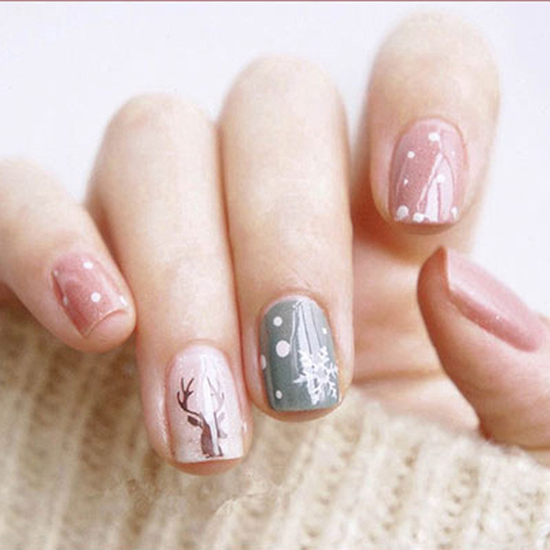 暖冬驯鹿穿搭甲圣诞节日系列美甲片秋冬马卡龙色假指甲贴片显白甲