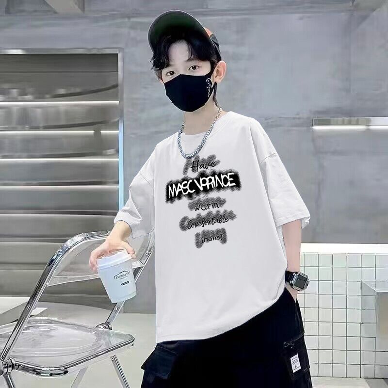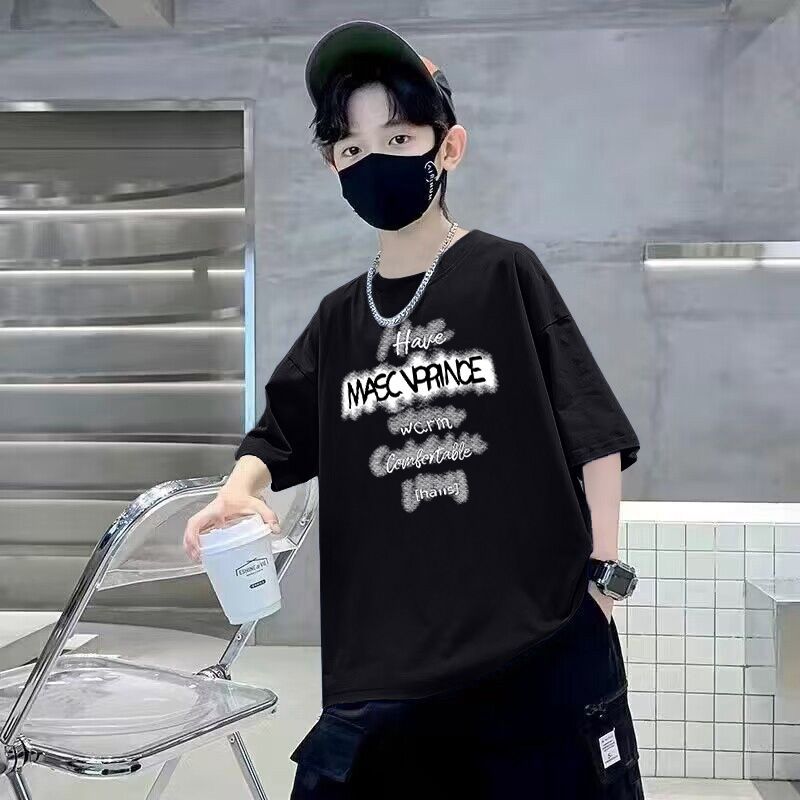 字母印花童装男童短袖t恤棉质INS夏季新款儿童宝宝半袖上衣中大童