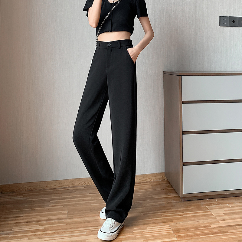 黑色西装阔腿裤女春秋新款高腰直筒裤垂直感宽松拖地长裤子