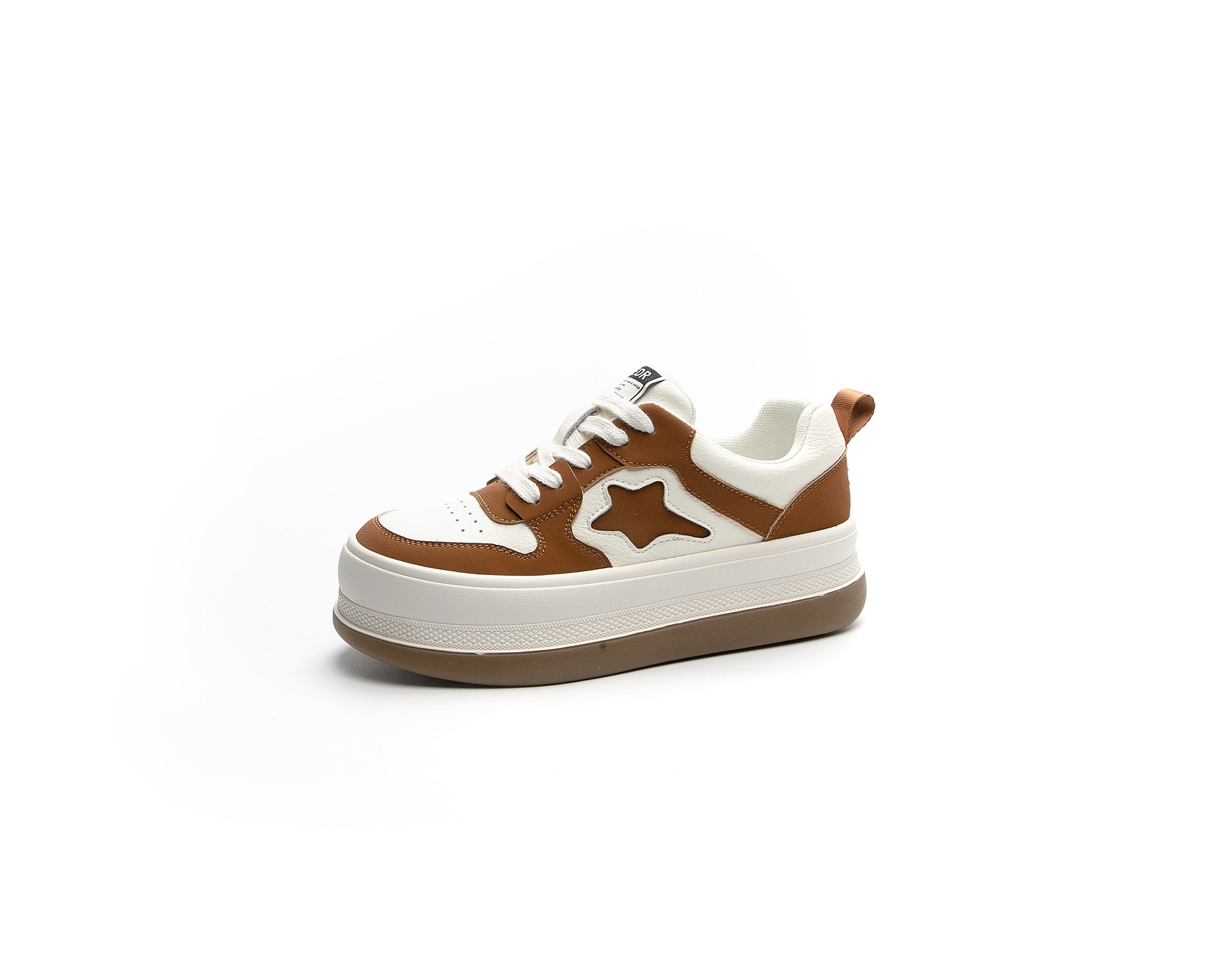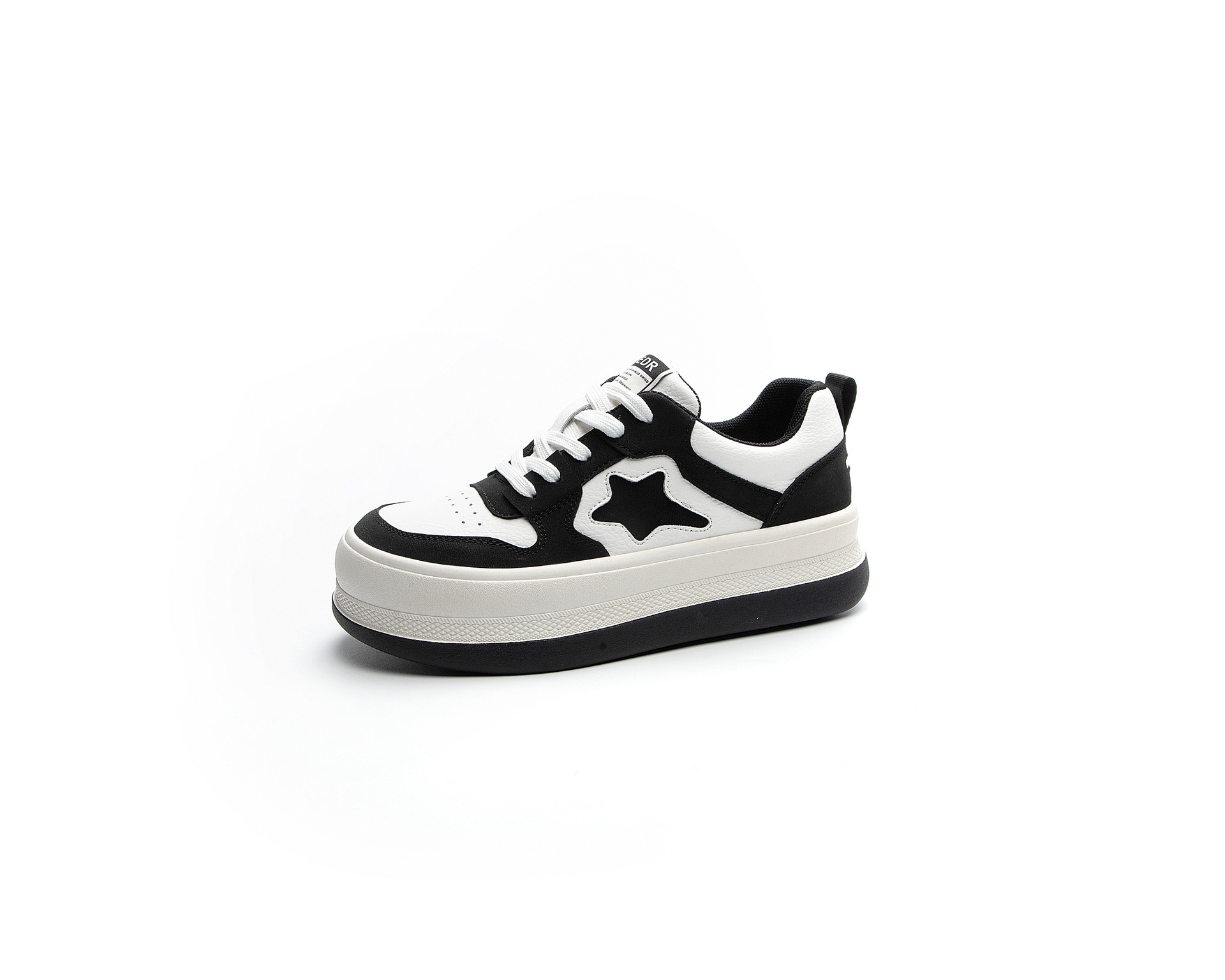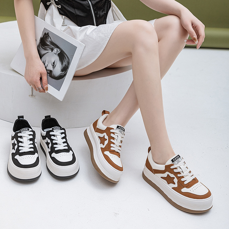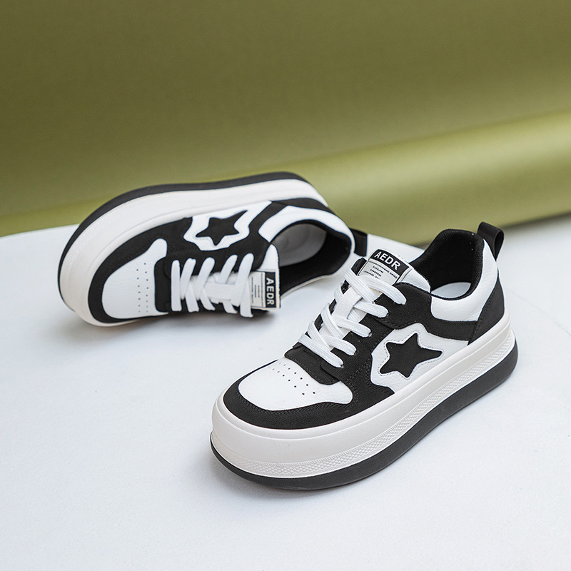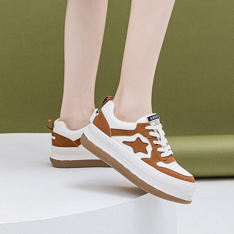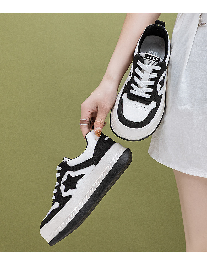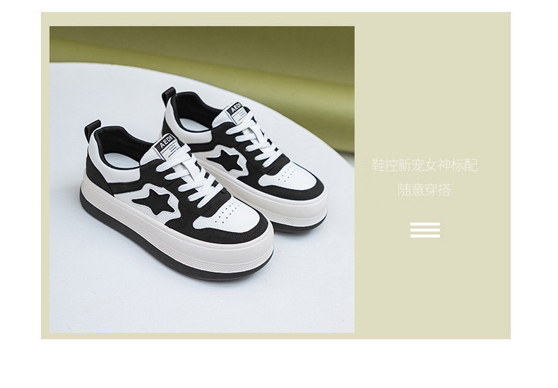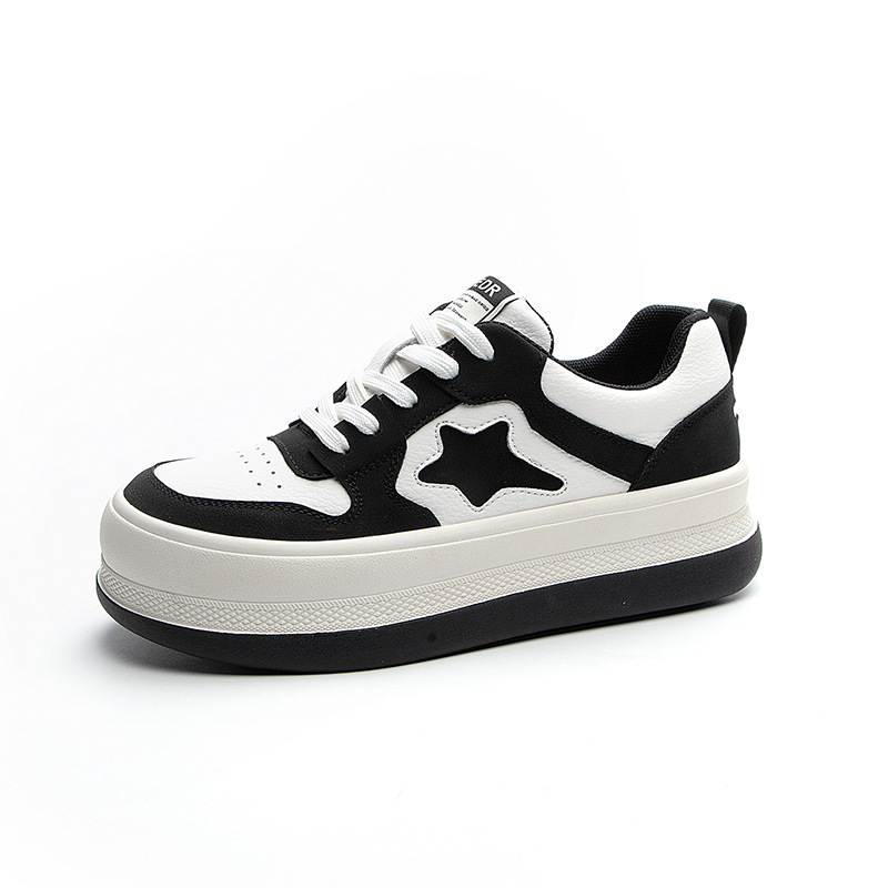 真皮休闲显脚小百搭圆头系带星星板鞋女秋季大码女鞋41-43