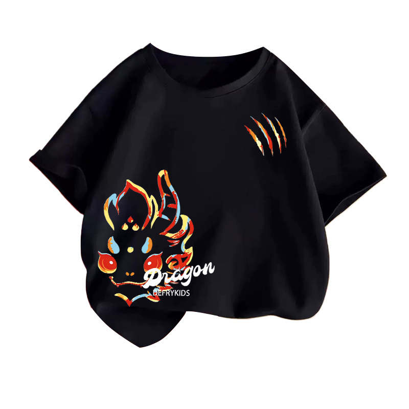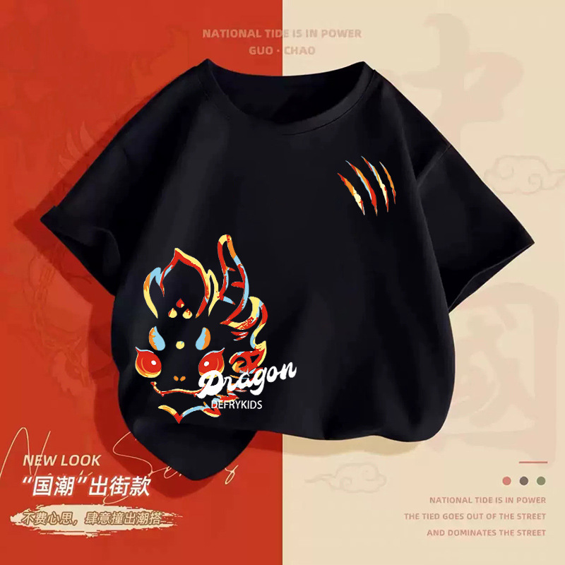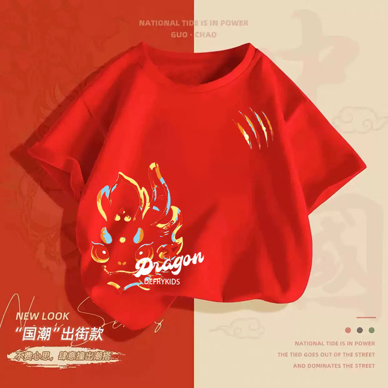 童装男童短袖t恤夏装新款儿童纯棉上衣中大童新年T恤打底衫上衣男
