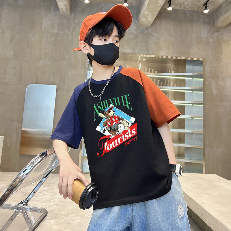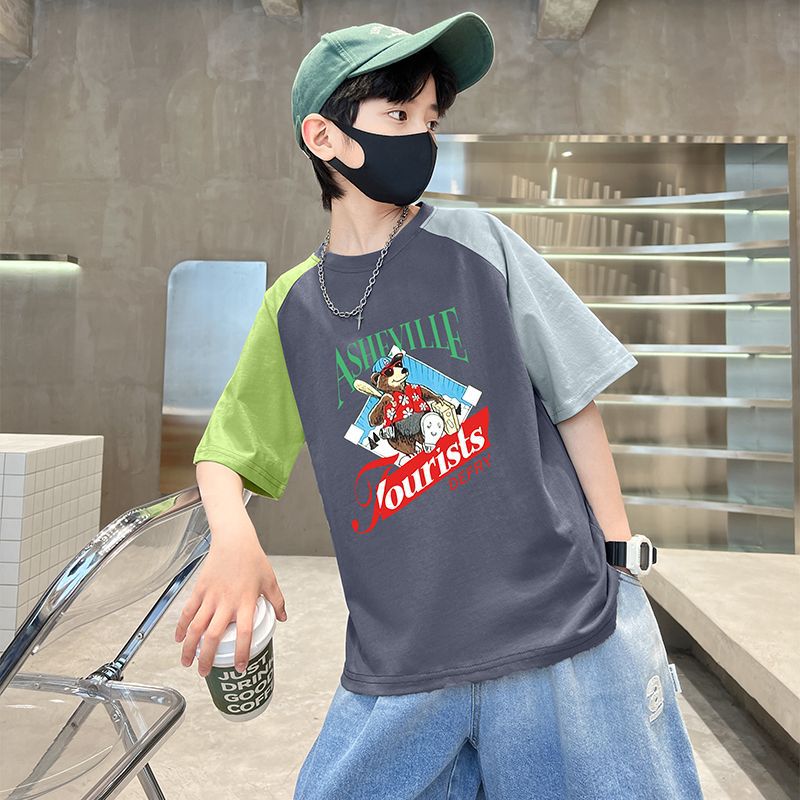 男童短袖T恤夏装童装新款宽松半袖儿童中大童纯棉夏上衣潮流