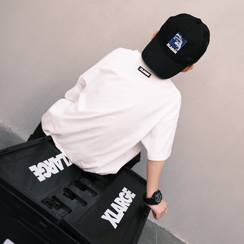 男士短袖t恤夏季潮流纯棉纯色拼接半袖T恤新款圆领宽松打底上衣男