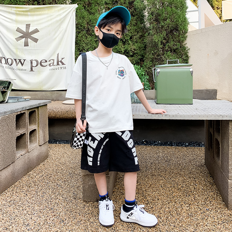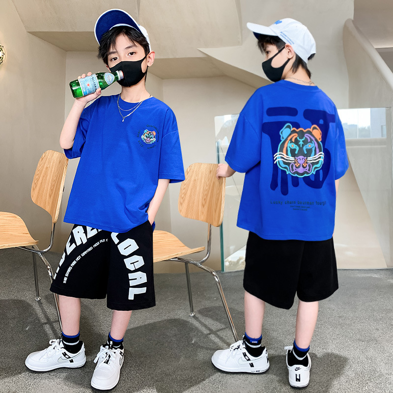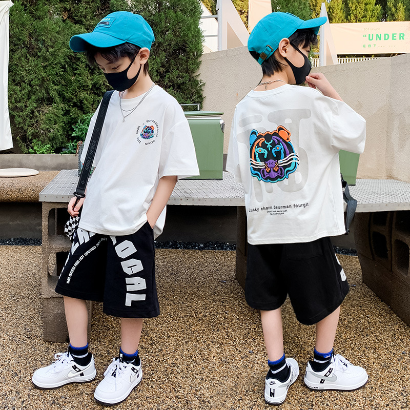 棉质男童短袖t恤潮牌儿童t恤男孩夏季酷帅宽松半袖洋气上衣童装