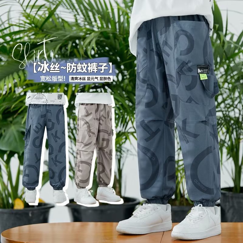 男童裤子春季薄款长裤新款儿童休闲冰丝防蚊裤中大童束脚裤子