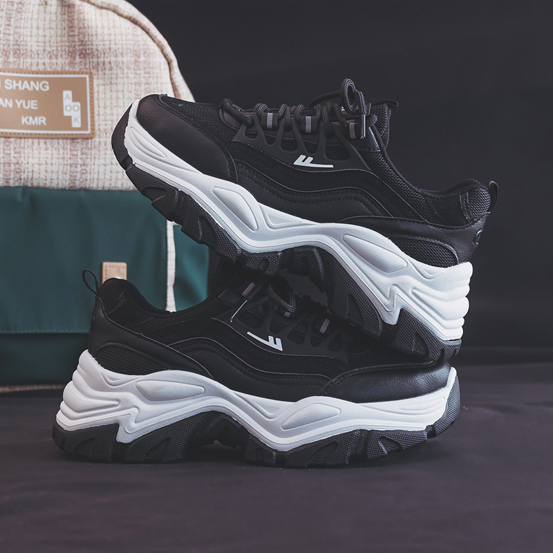 回力黑色老爹鞋女春秋新款ins潮超火百搭休闲鞋厚底增高单鞋