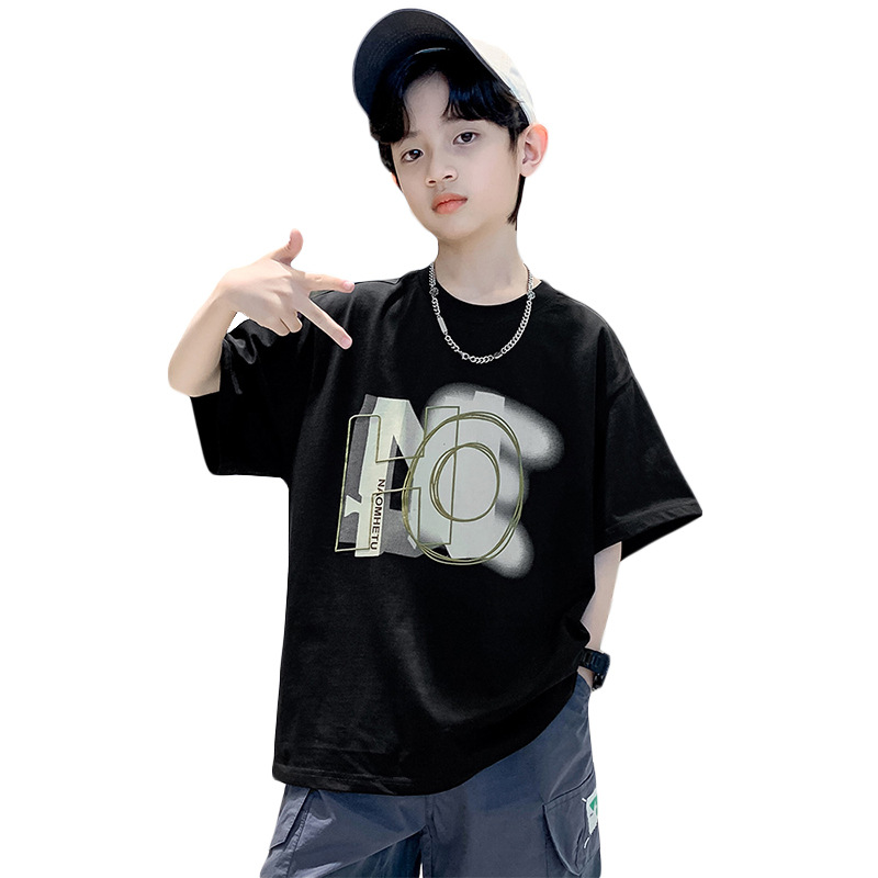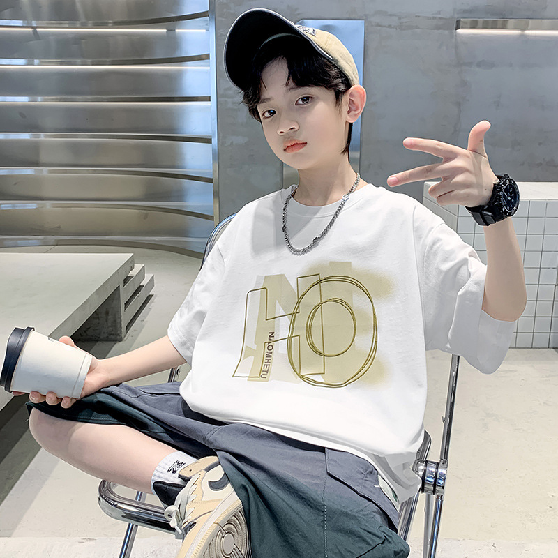 男童短袖T恤棉质印花夏季新款中大童男孩字母休闲半袖t宽松上衣