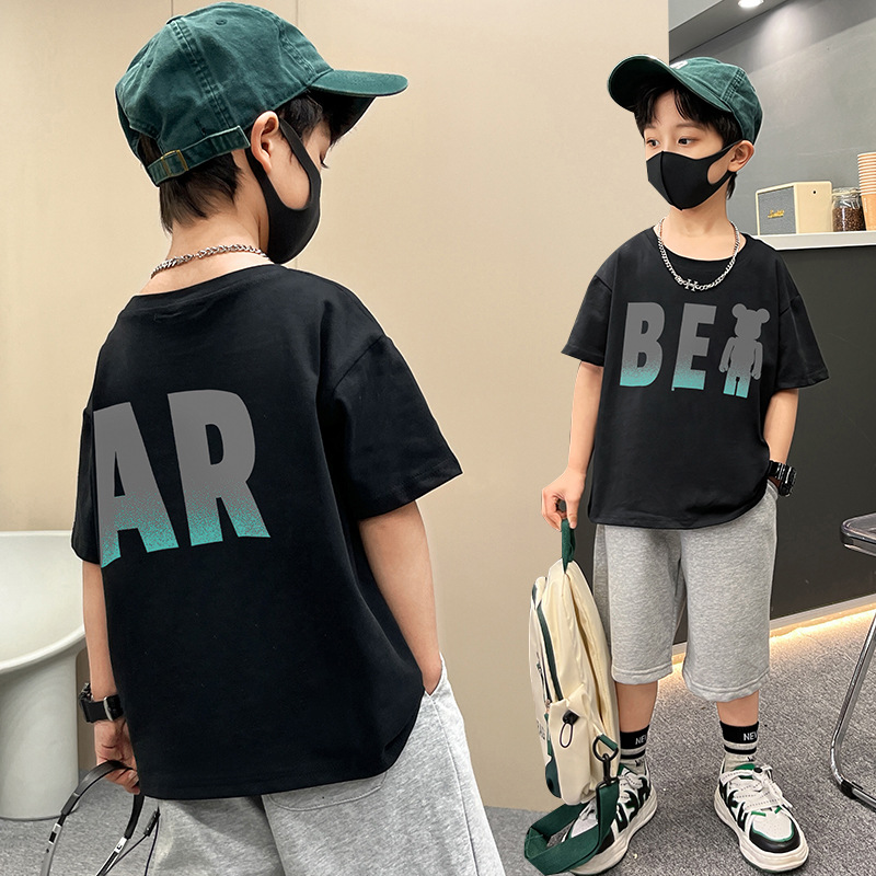 实拍男童棉质短袖夏季新款帅气儿童t恤男孩洋气休闲宽松半袖t上衣