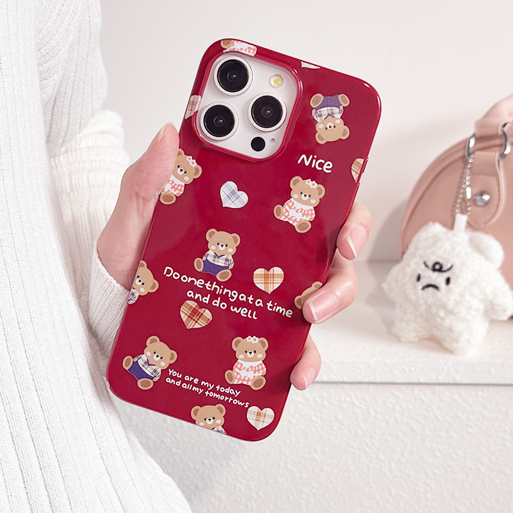 爱心小棕熊适用于iphone15promax苹果14plus手机壳13/12软11亮面x