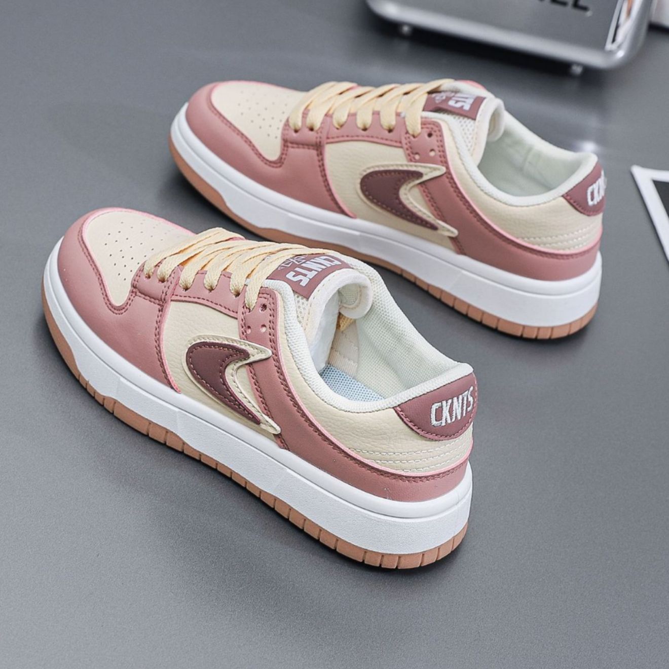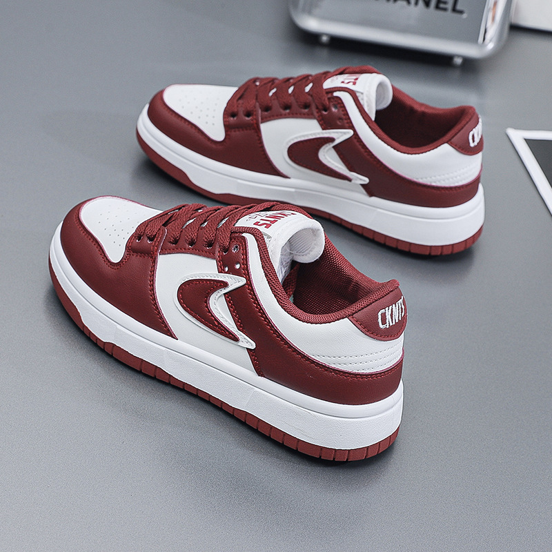 酒红色经典板鞋女秋季新款超纤皮面休闲鞋百搭复古系带运动潮