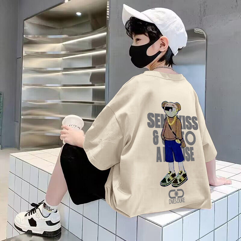 童装男童短袖t恤夏季儿童透气夏装男孩大童半袖棉质宽松新款潮