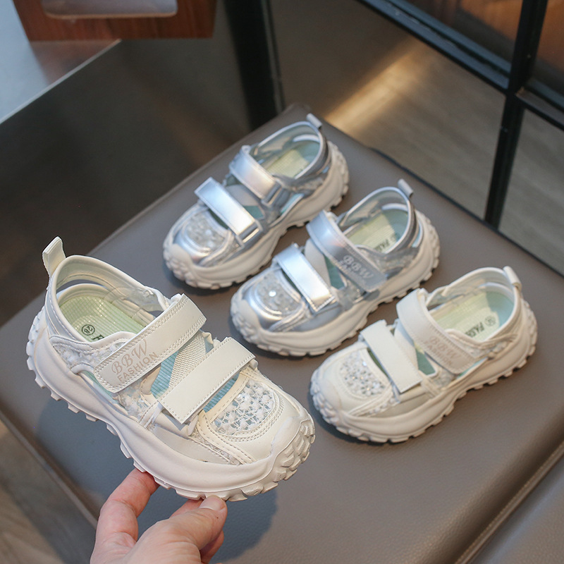 男童运动框子鞋镂空透气鞋2025款夏季儿童防滑软底中大女童包头鞋