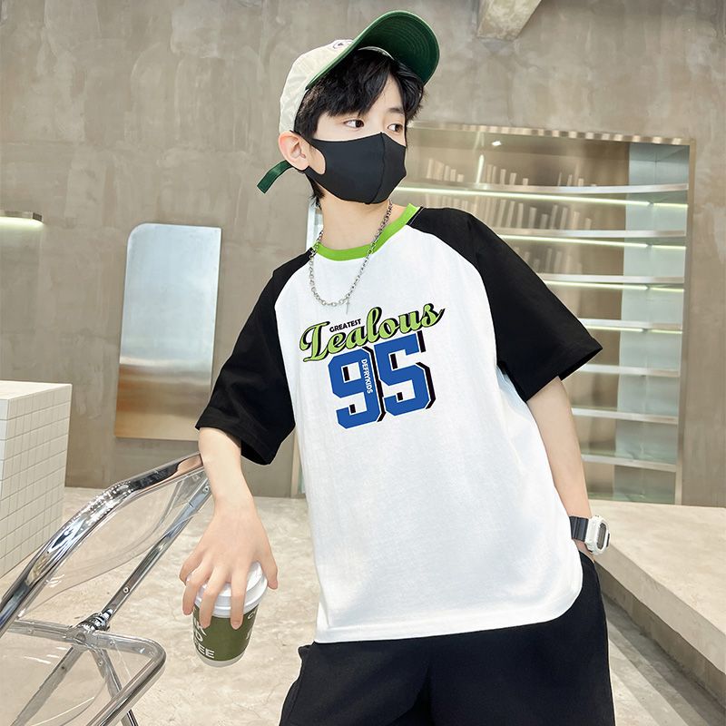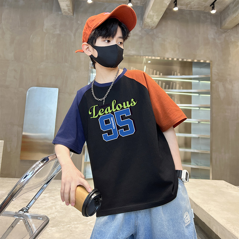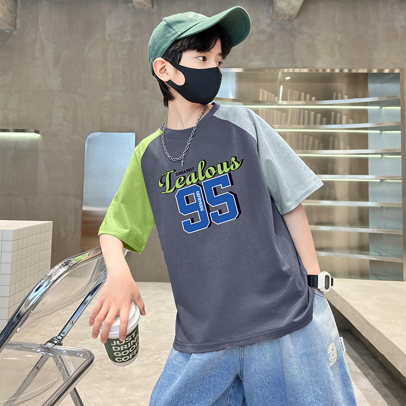 男童短袖拼接T恤夏装童装新款儿童中大童纯棉韩版男孩夏上衣