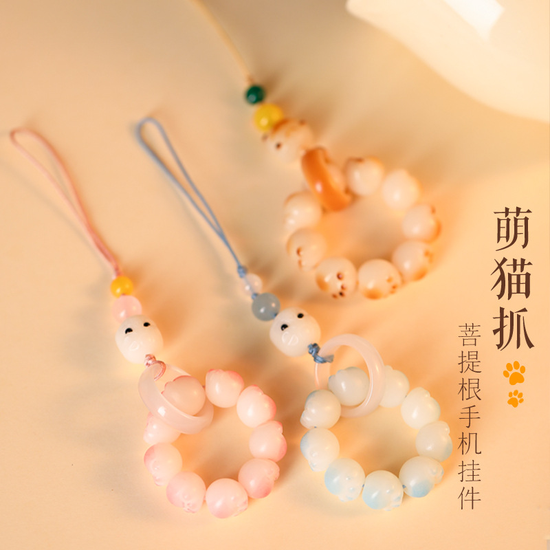 炭烧白玉菩提根猫爪挂件女生绕指柔手指小捻珠菩提子手串钥匙挂件