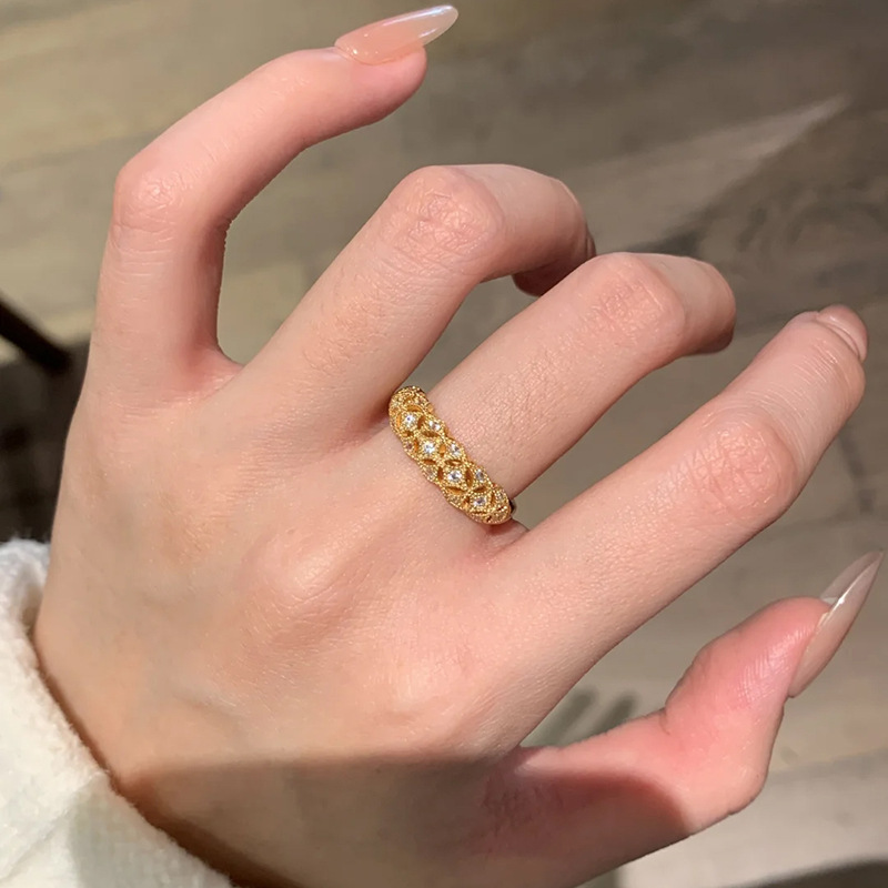 小红书新款菠萝包满钻戒高颜值设计轻奢个性百搭时尚潮流小众饰品