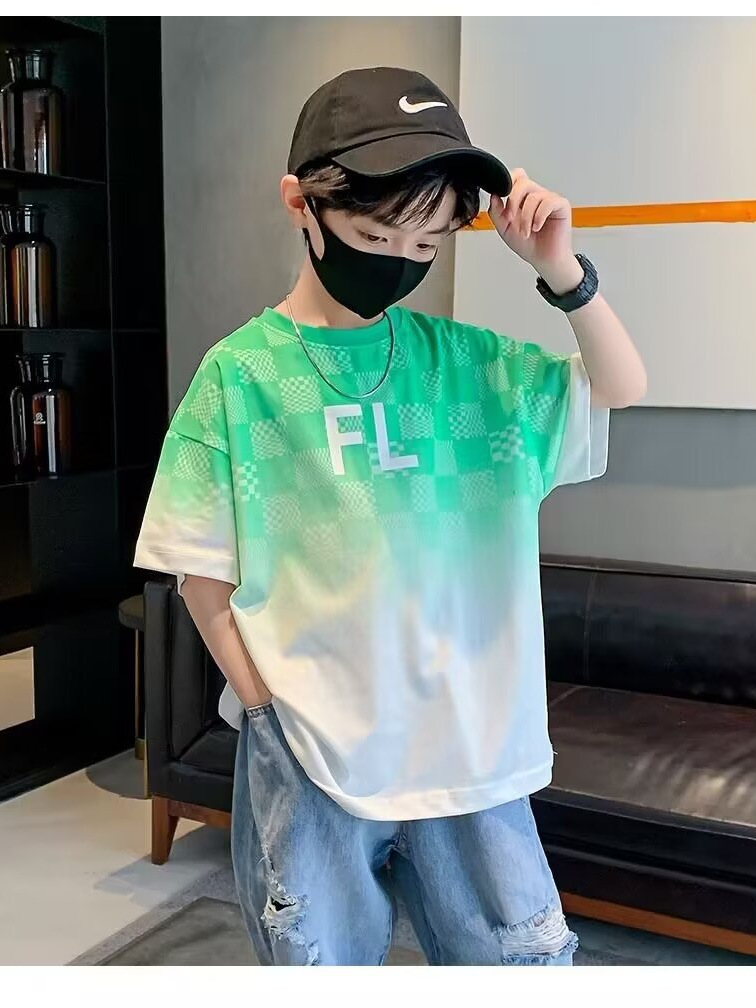 男童夏装短袖渐变t恤棉半袖新款儿童宽松运动上衣大童体恤衫