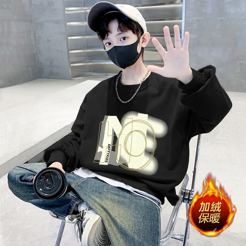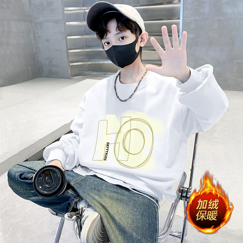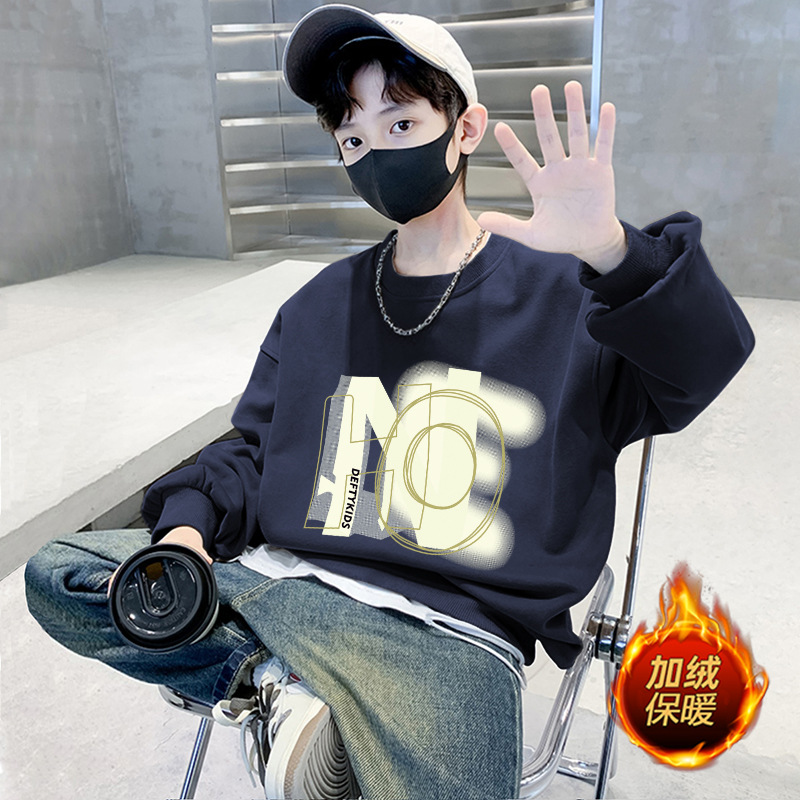秋冬男童加绒卫衣新款韩版中大童长袖百搭休闲韩版潮流上衣潮