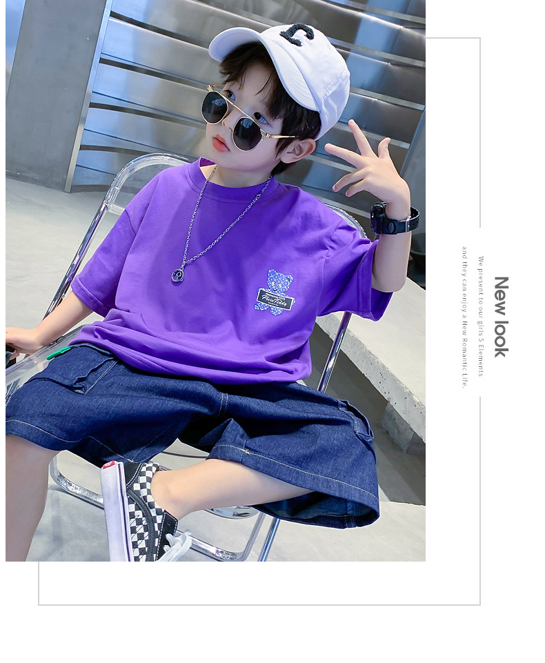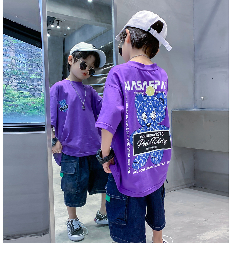 童装男童夏装短袖T恤新款宽松卡通印花儿童男孩夏季潮服大童帅气