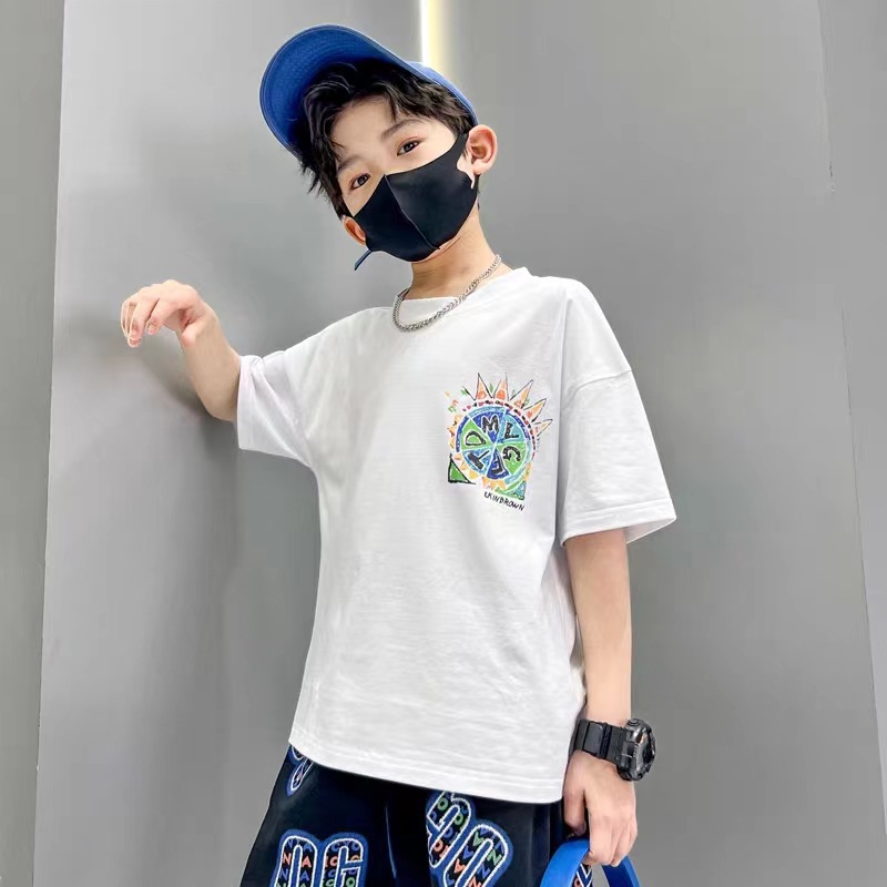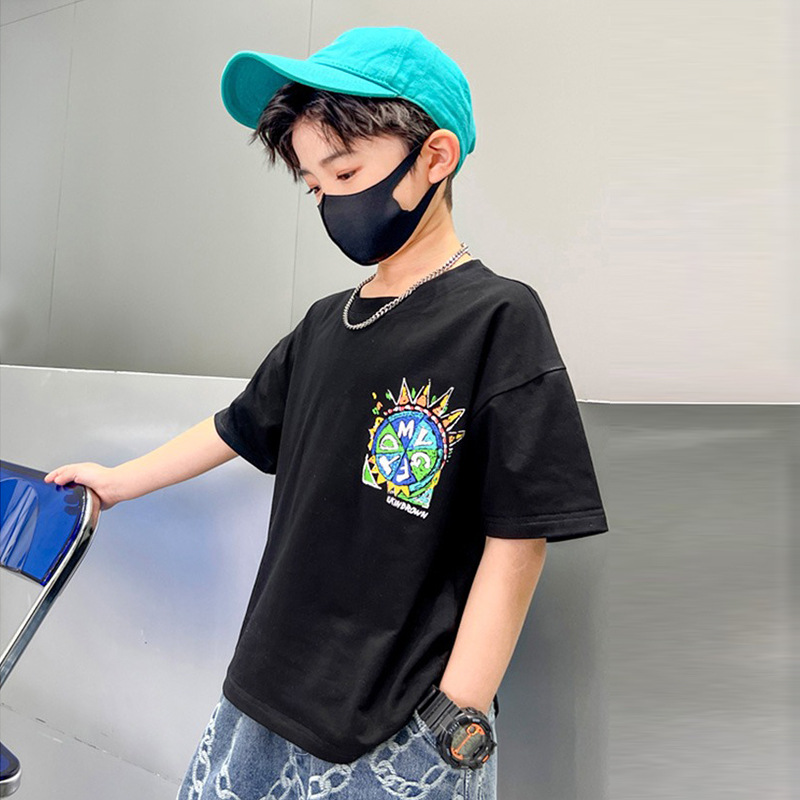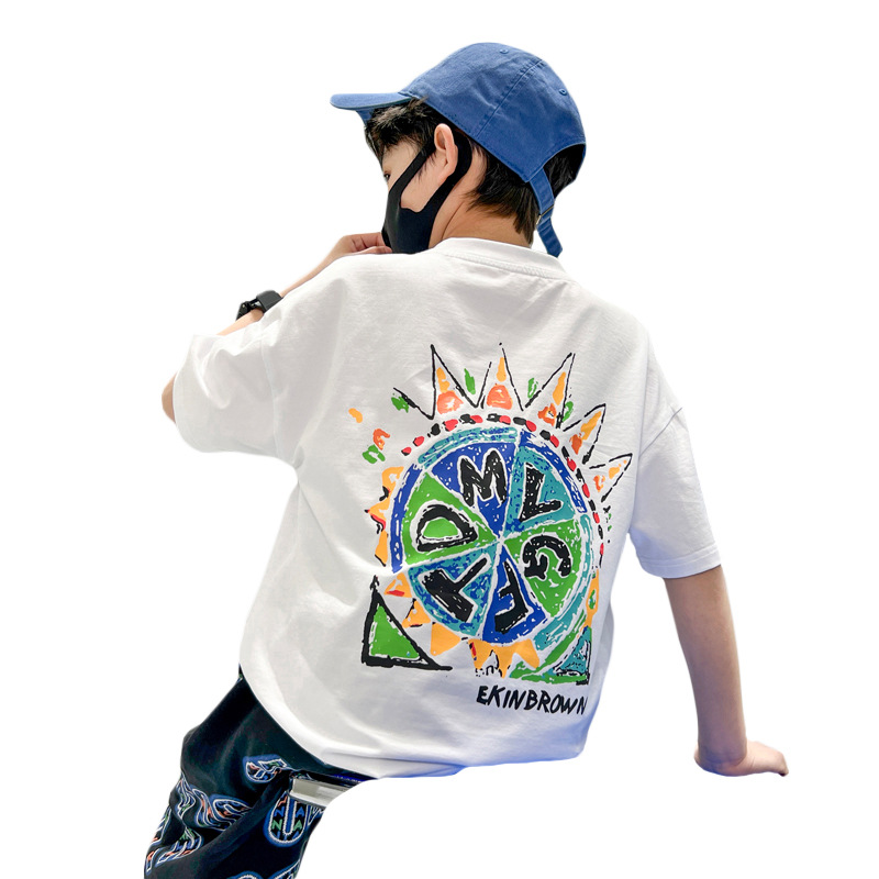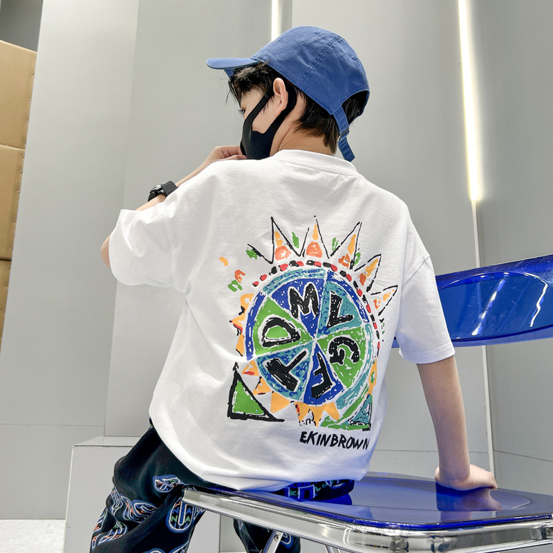 男童短袖T恤体恤衫新款宽松中大童卡通儿童装圆领夏装帅气男孩