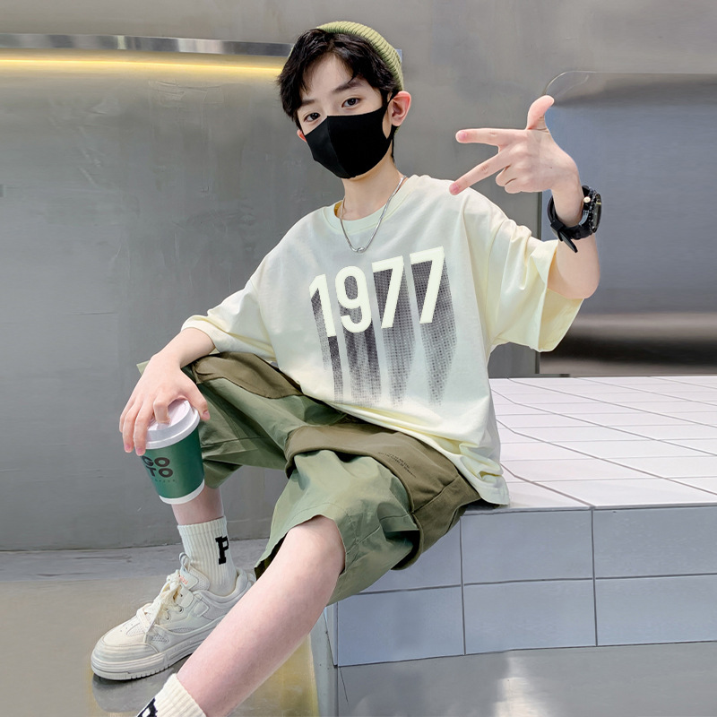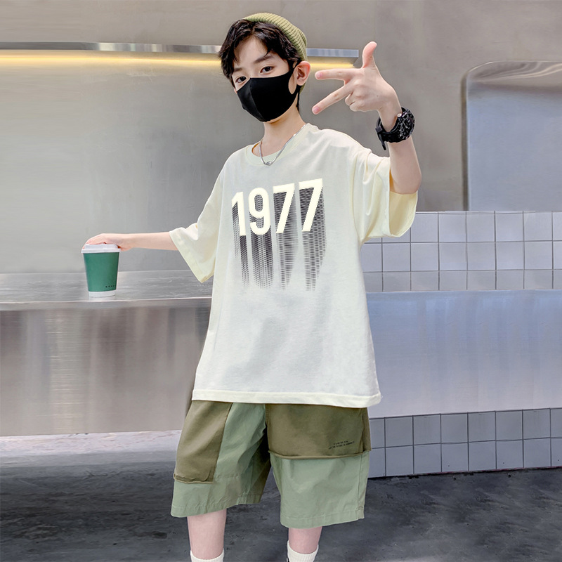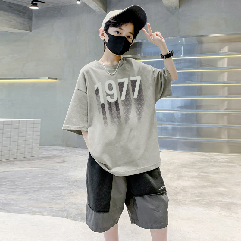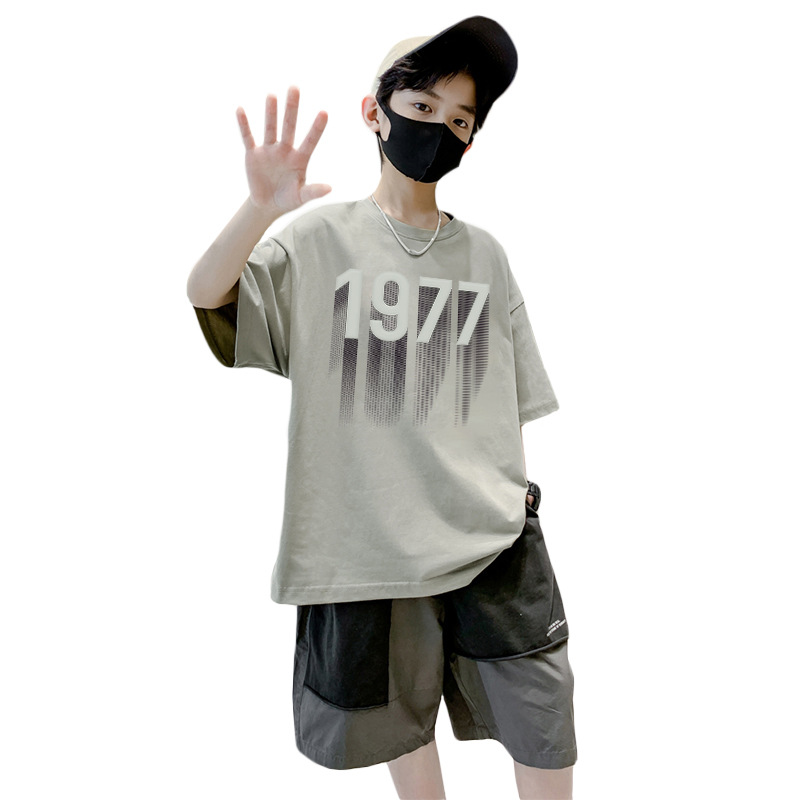 儿童t恤男童夏季韩系宽松纯棉短袖字母半袖t男孩帅气儿童打底