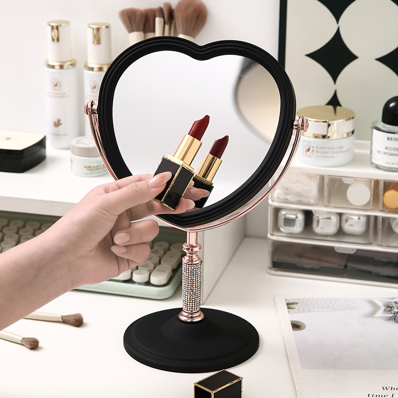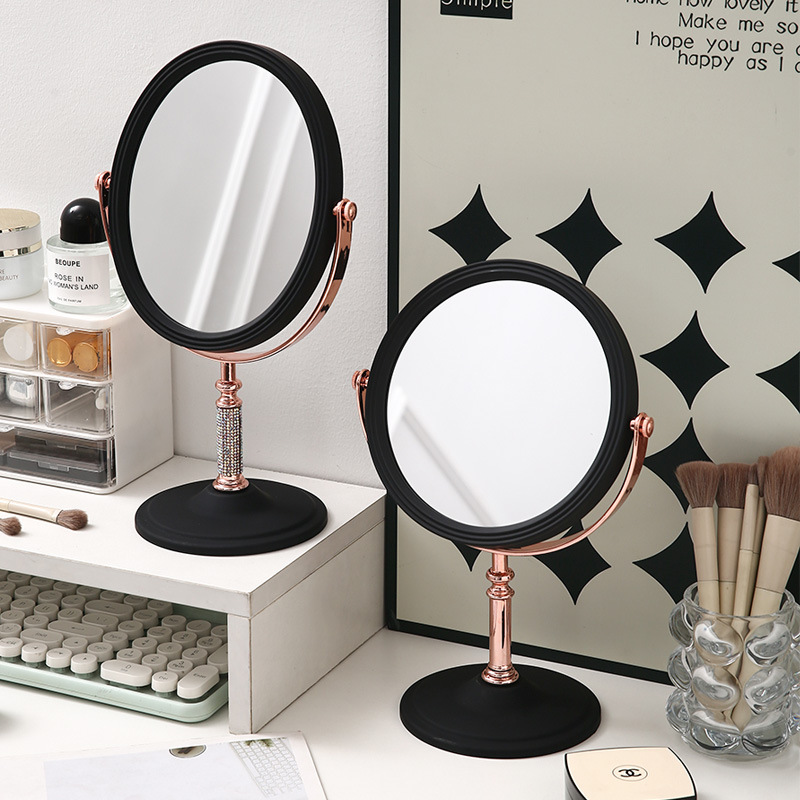 镶钻镜子立式梳妆镜旋转梳妆台高清欧式化妆镜桌面公主学生宿舍