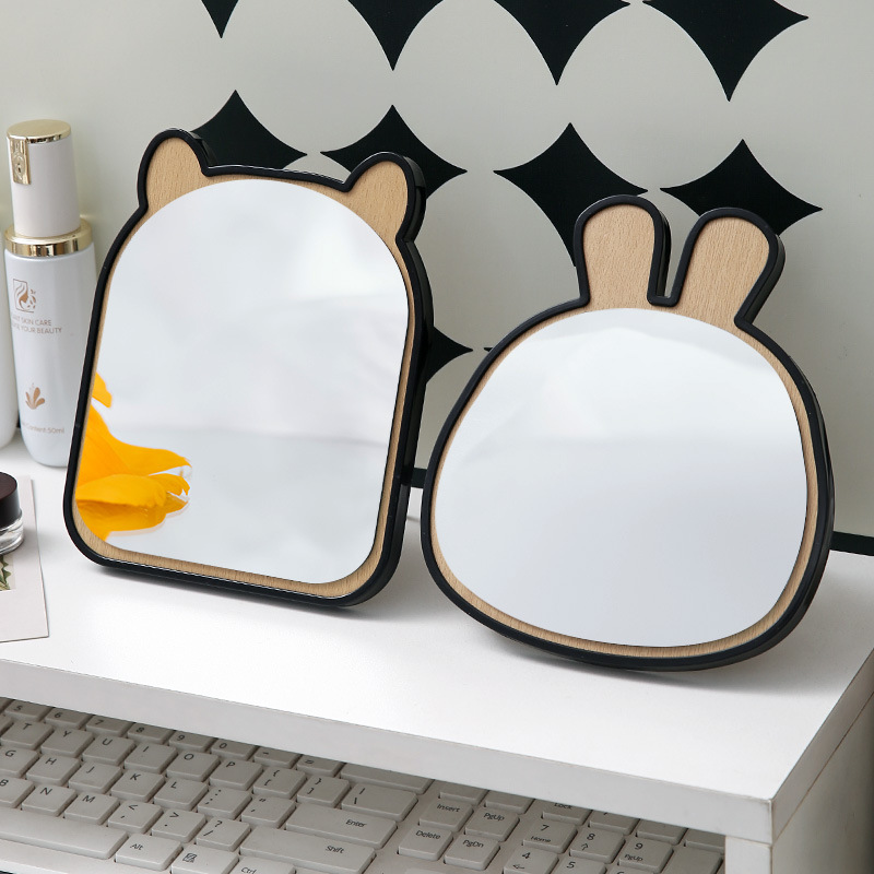 镜子ins化妆镜学生宿舍桌面镜可折叠便携家用卧室台式梳妆镜随身