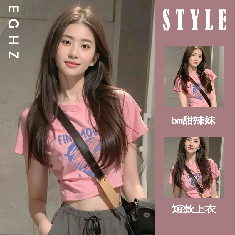 粉色多巴胺短袖t恤女显瘦设计感小众别致美式甜辣妹小个子短上衣