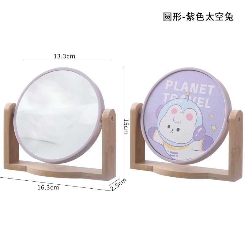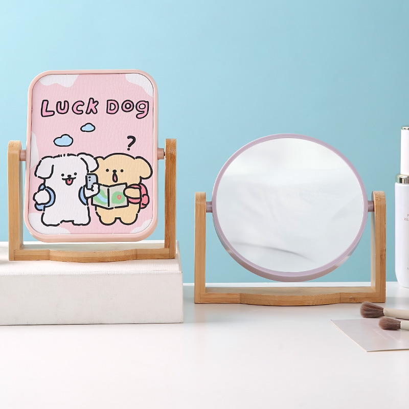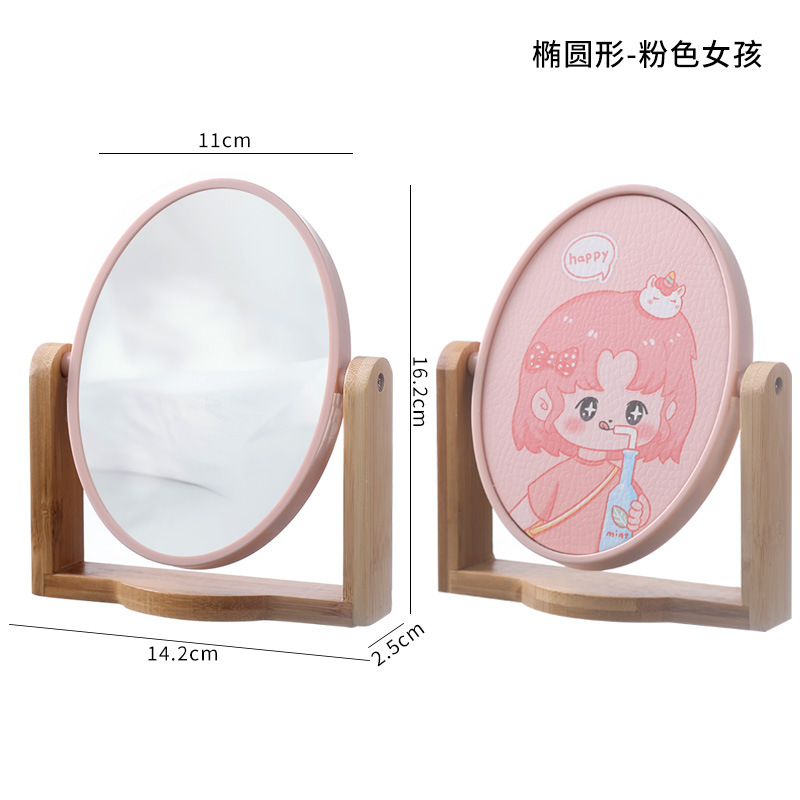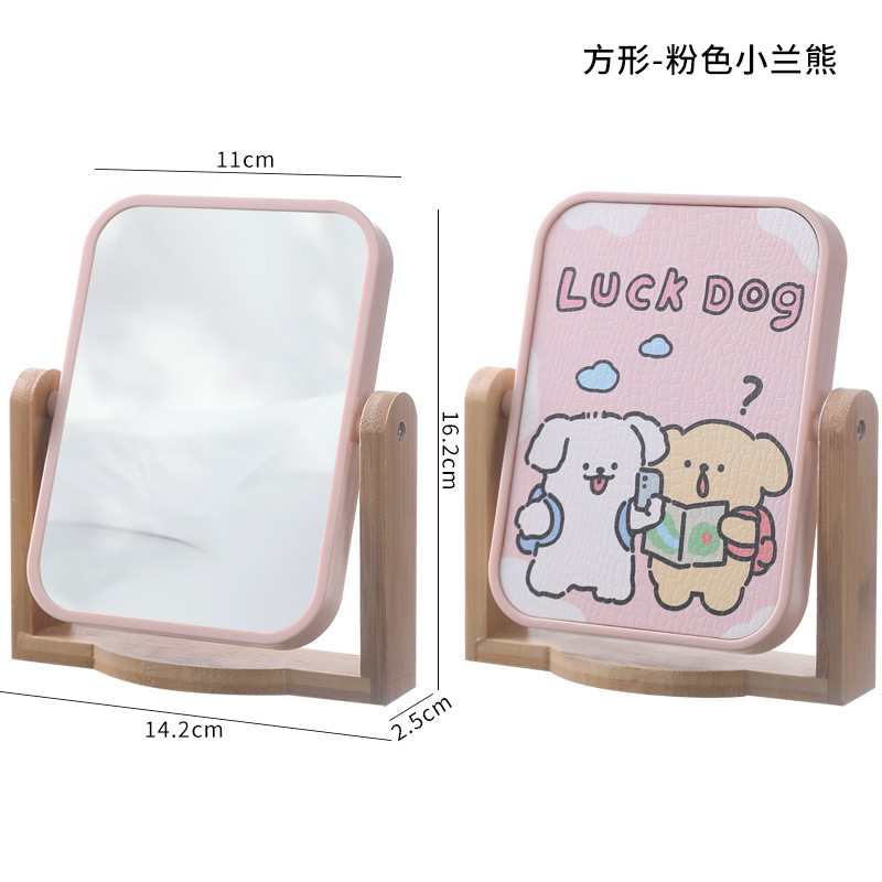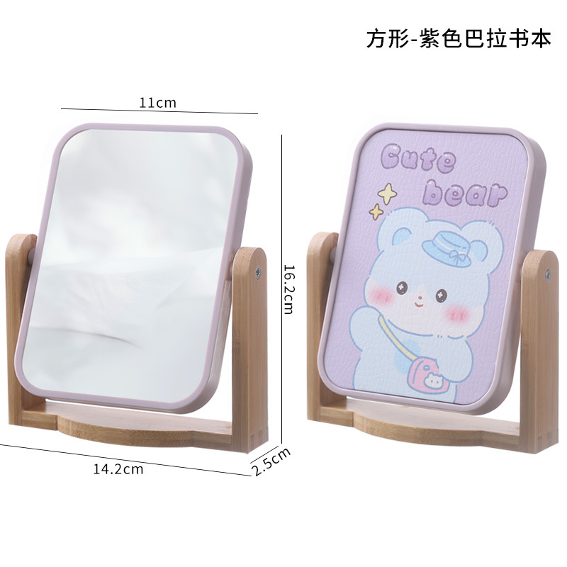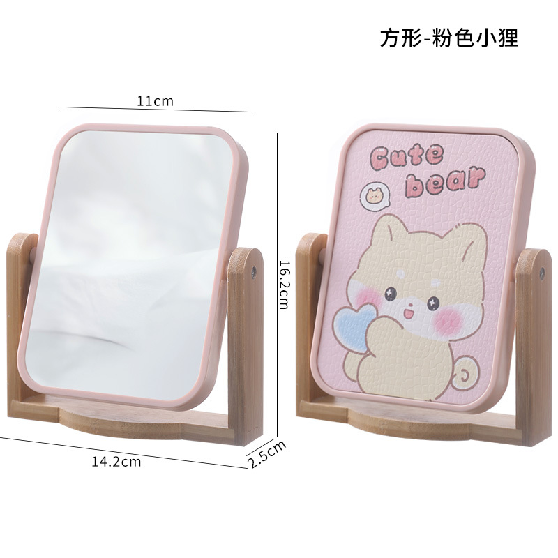 木质新款卡通风情梳妆台镜子学生成人化妆镜子 便携可立独立盒