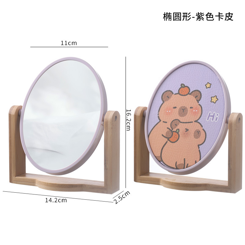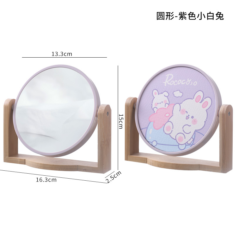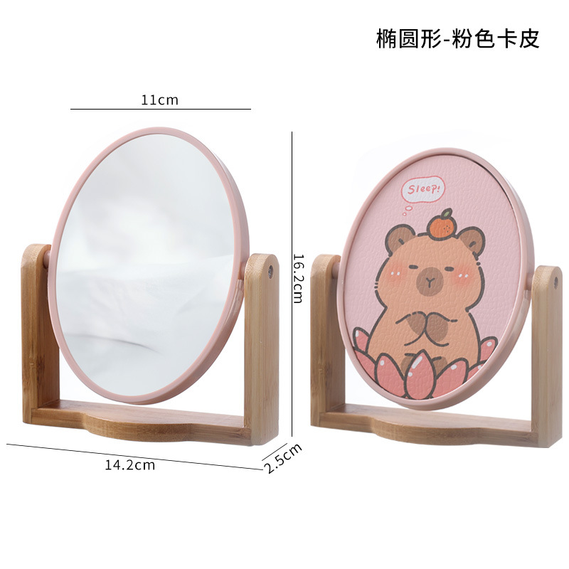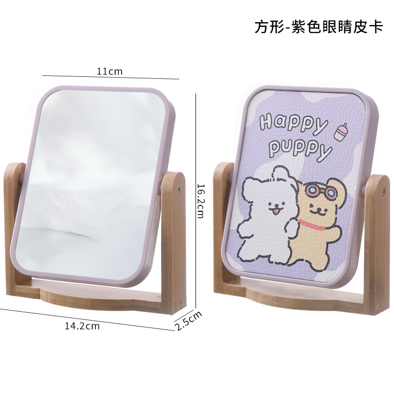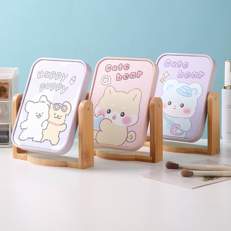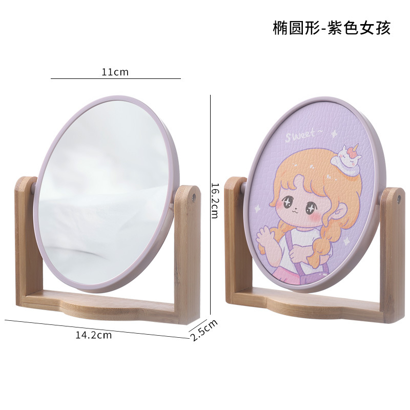 木质新款卡通风情梳妆台镜子学生成人化妆镜子 便携可立独立盒