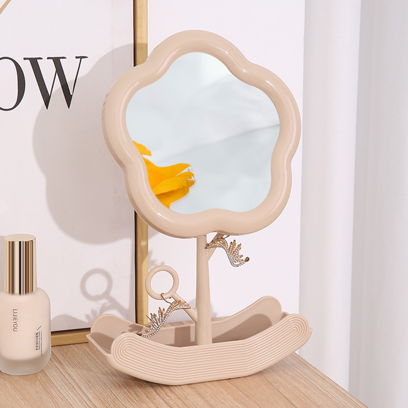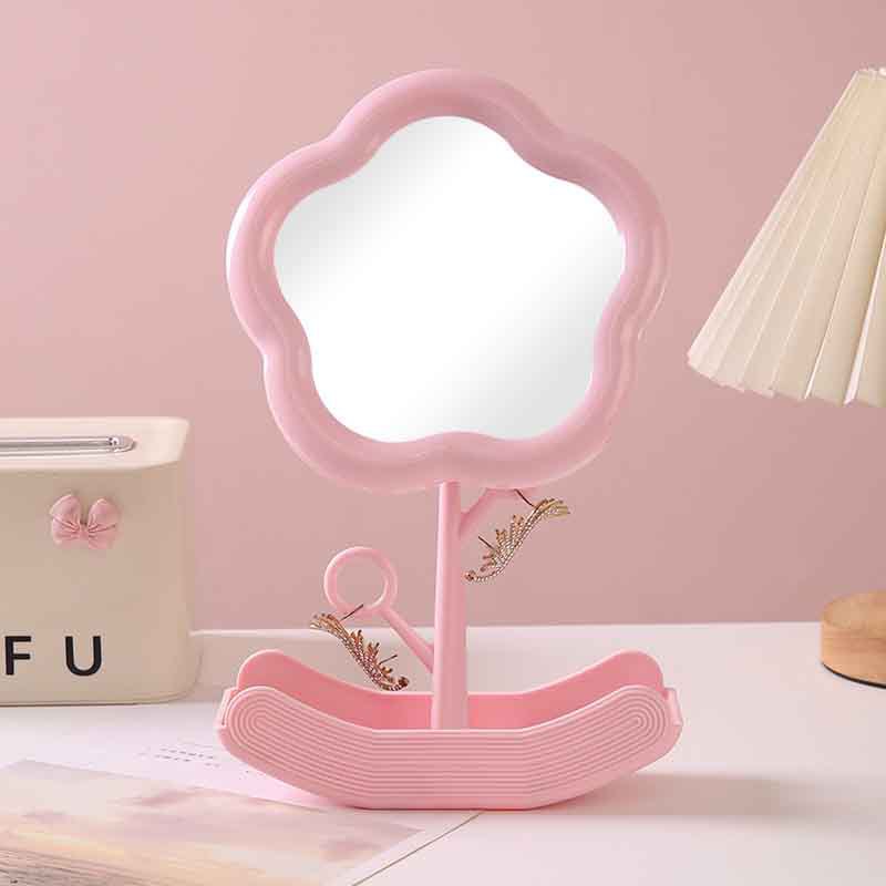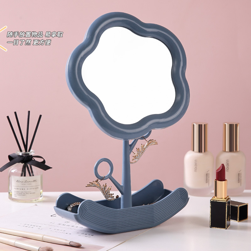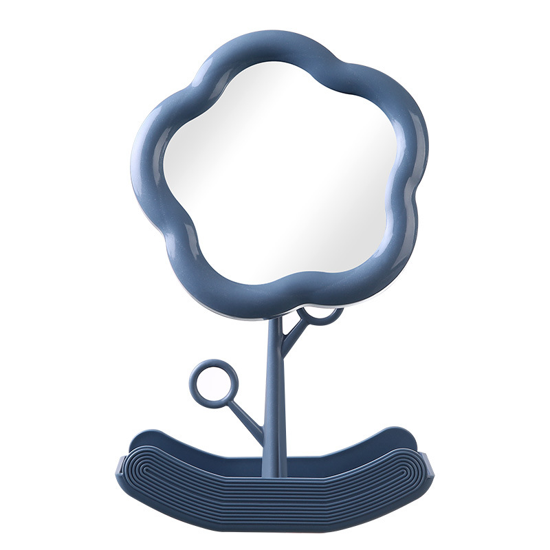 塑料花朵化妆镜少女心可旋转桌面台式梳妆镜学生宿舍便携镜子收纳