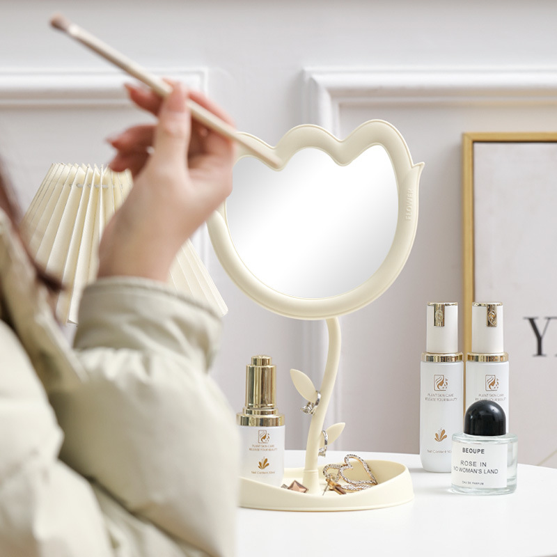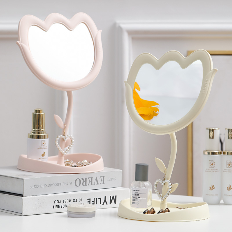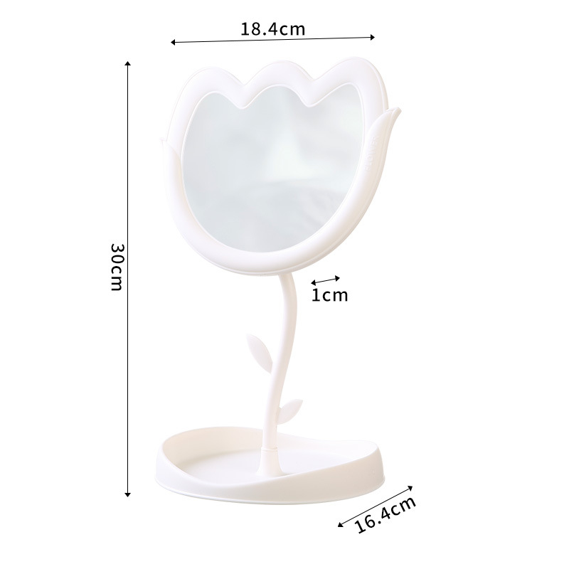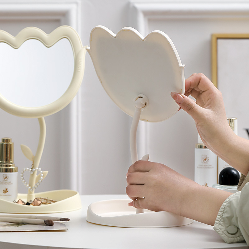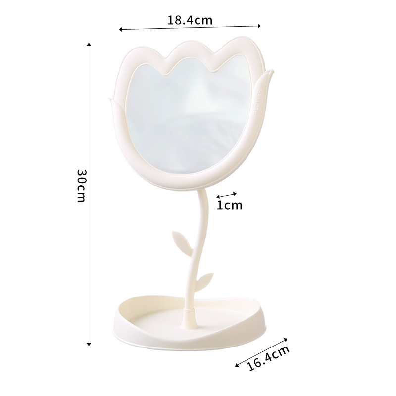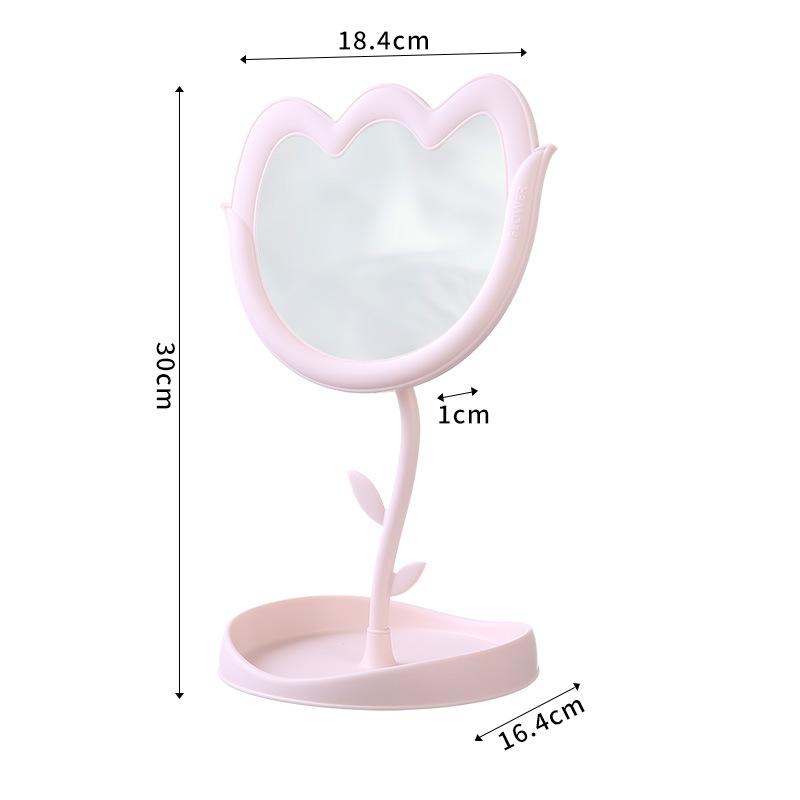 花朵化妆镜郁金香桌面塑料单面旋转镜学生带底座美妆补妆公主镜