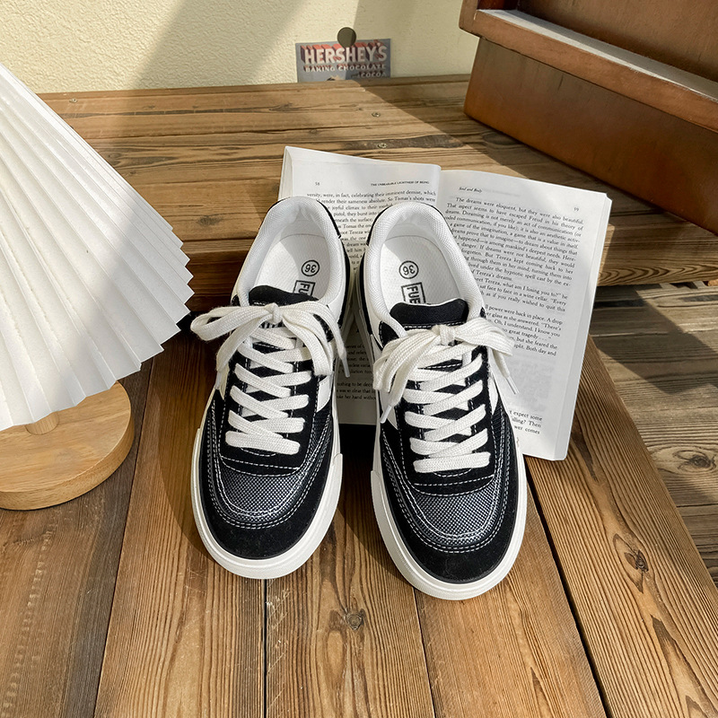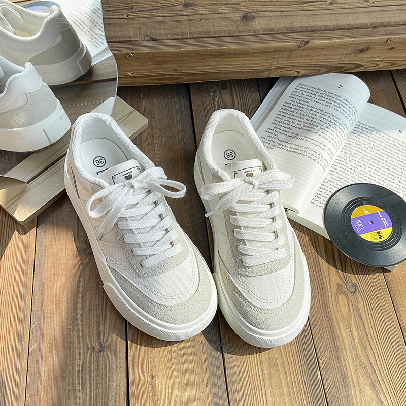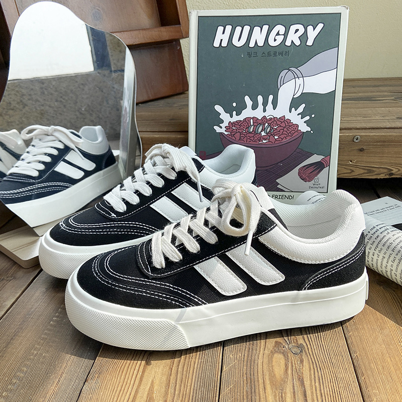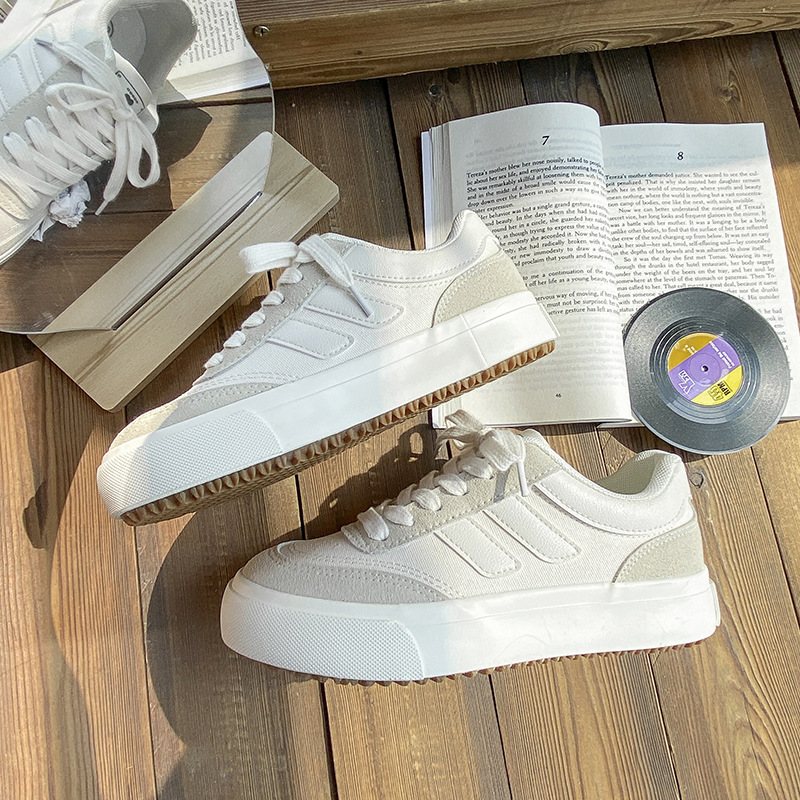 小众原创板鞋女春秋新款美式百搭休闲女鞋ins圆头厚底帆布鞋