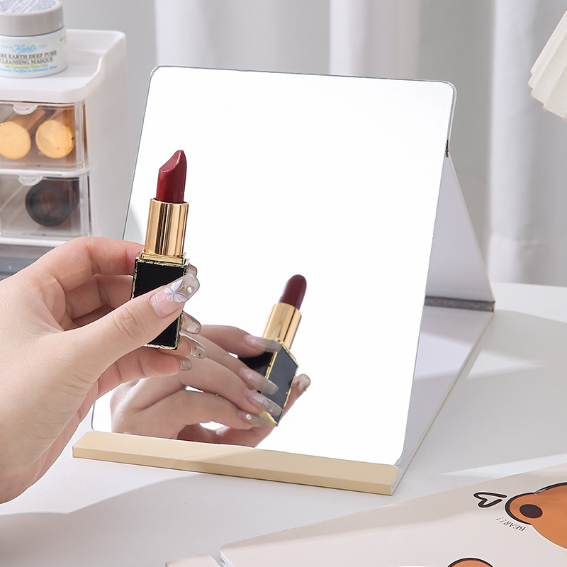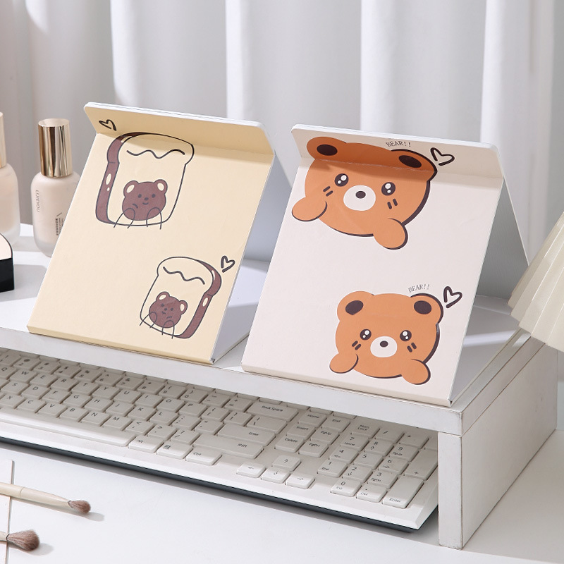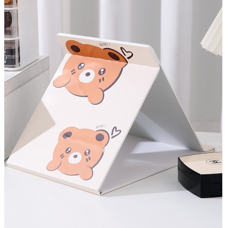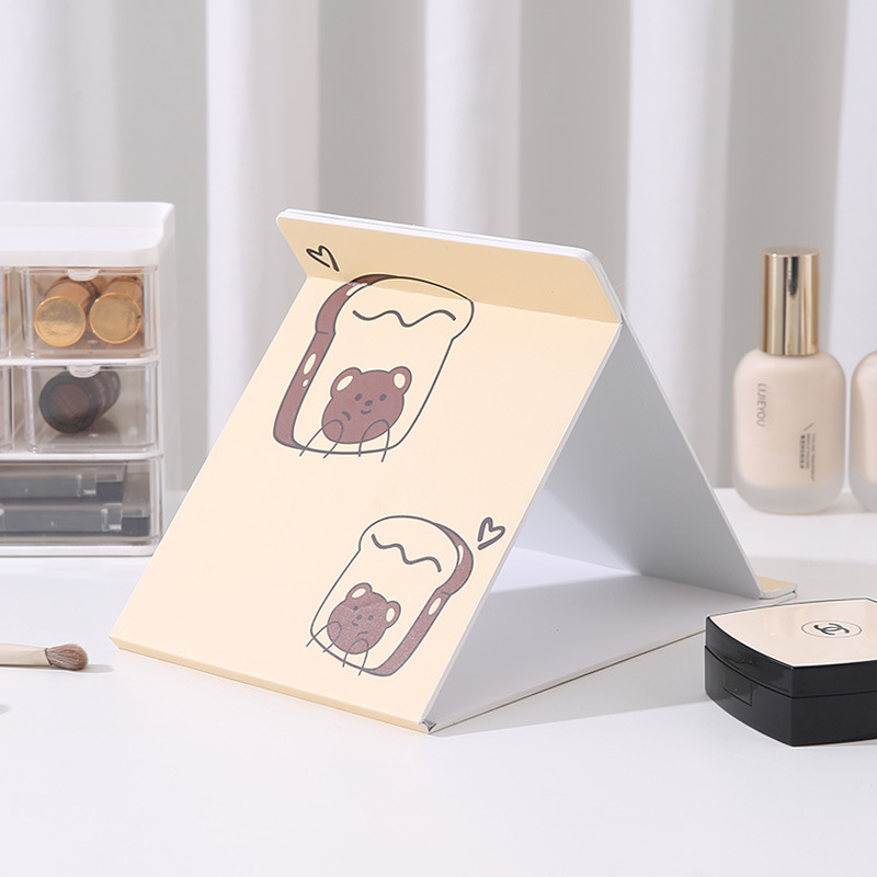 小熊塑料化妆镜折叠女随身携带宿舍桌面手持旅行办公室台式可立