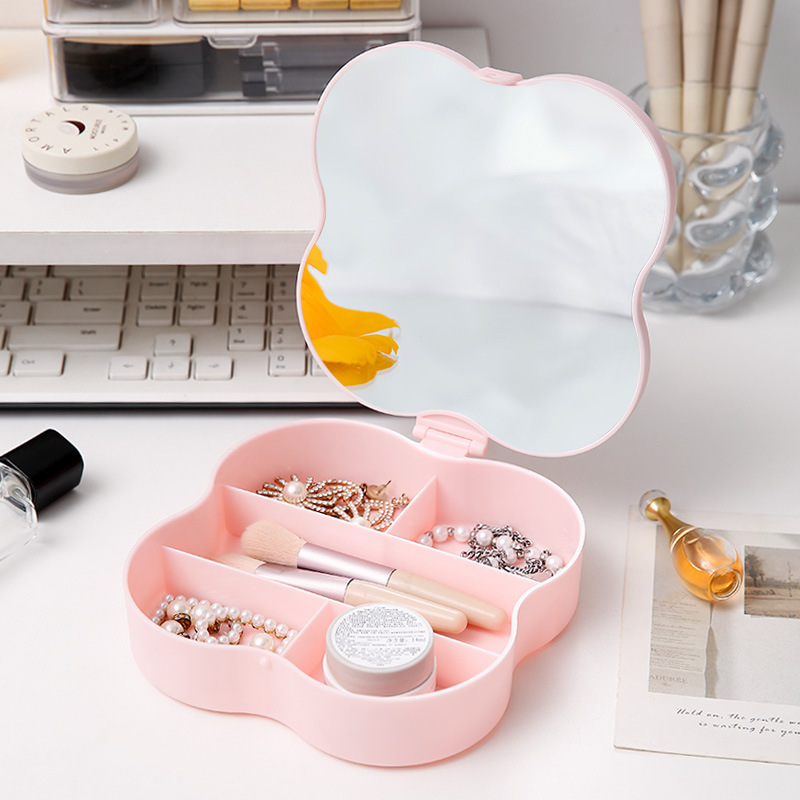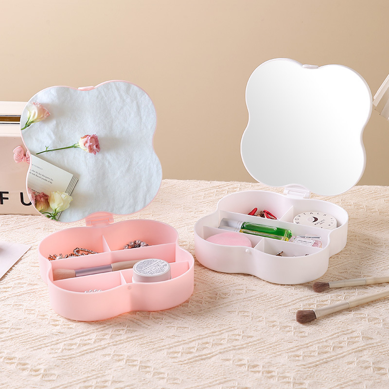 四叶草收纳化妆镜学生宿舍放桌上的镜小便携收纳盒一体桌面家用