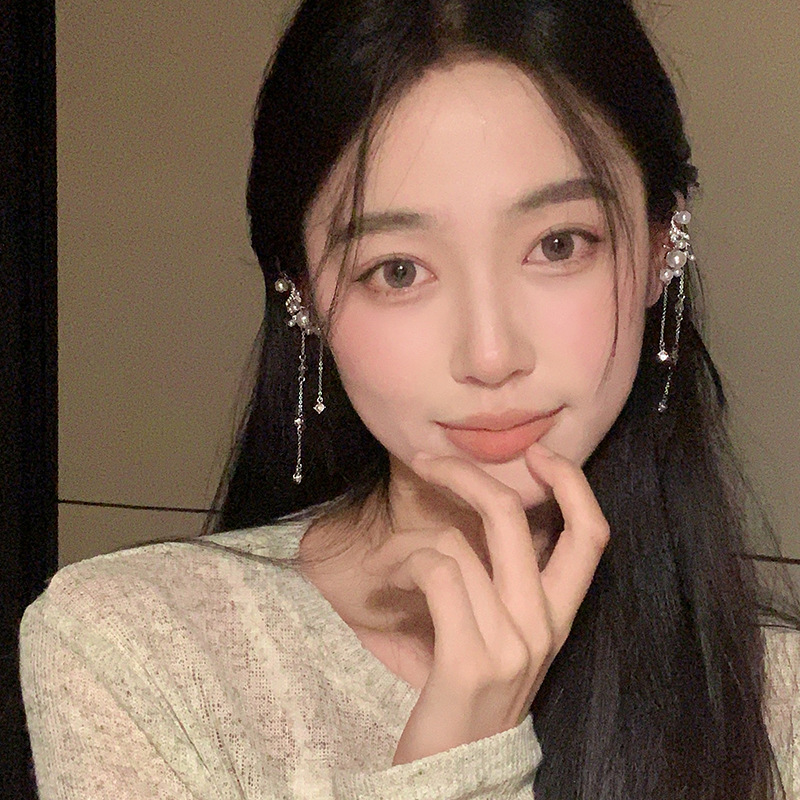 超仙精灵耳珍珠流苏耳环女 ins气质高级感百搭耳骨夹夹无耳洞耳饰