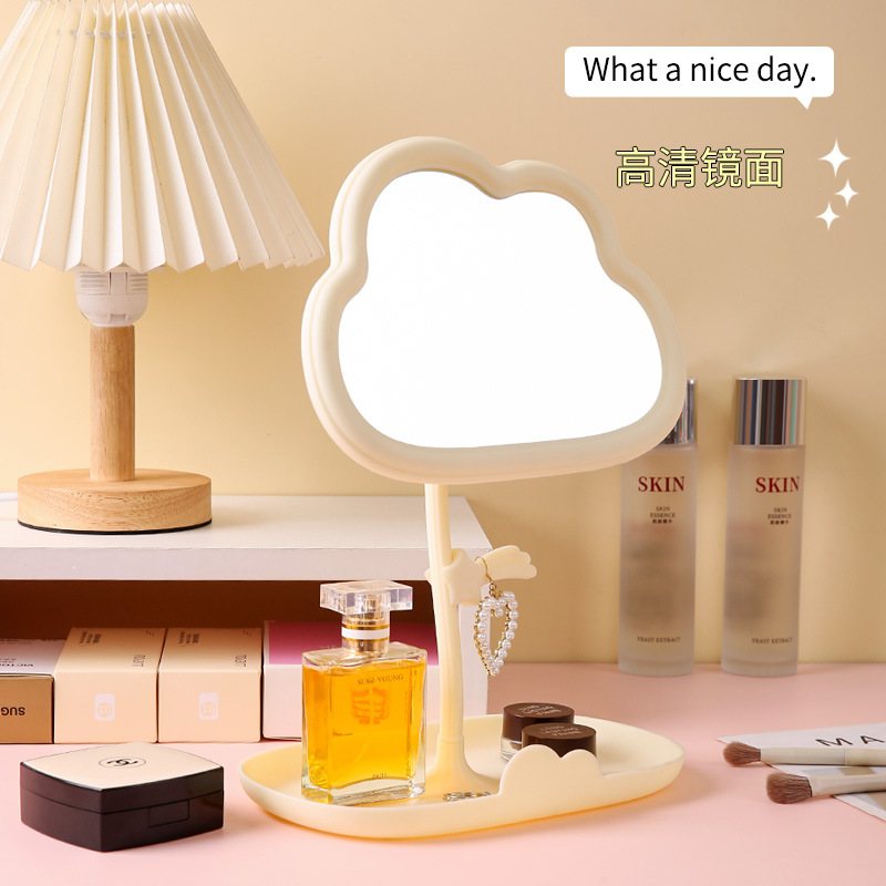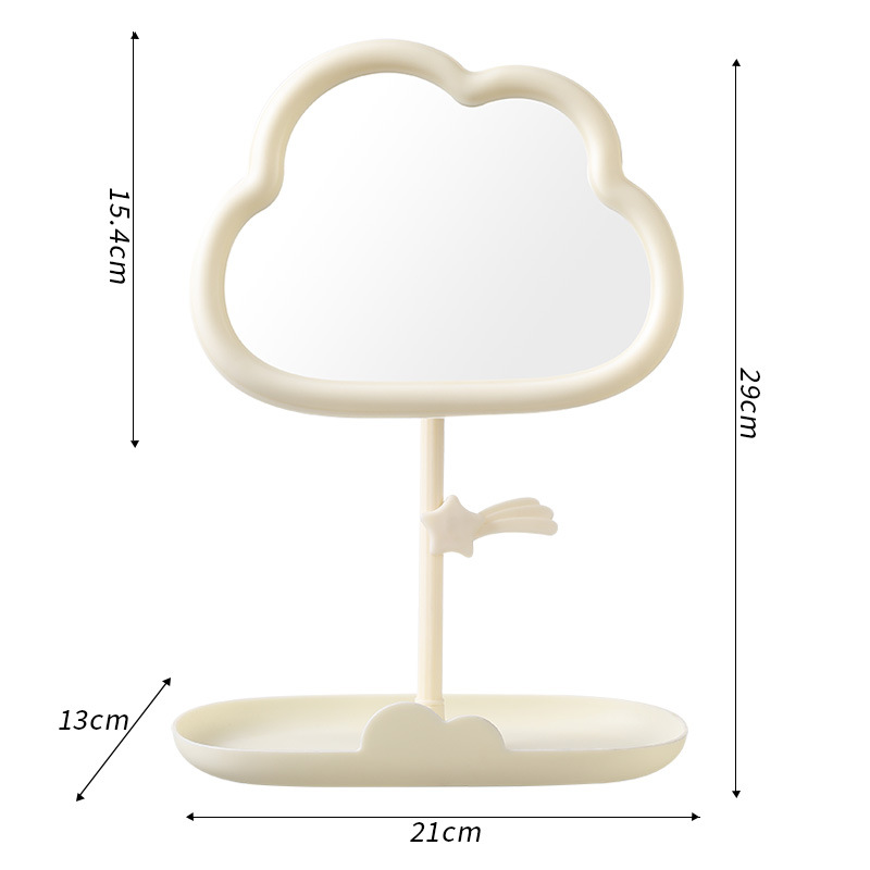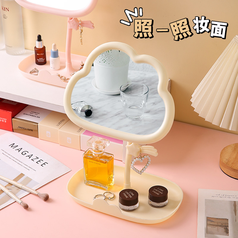 奶油风云朵镜子家用桌面梳妆台式公主镜学生宿舍高清化妆镜女神镜