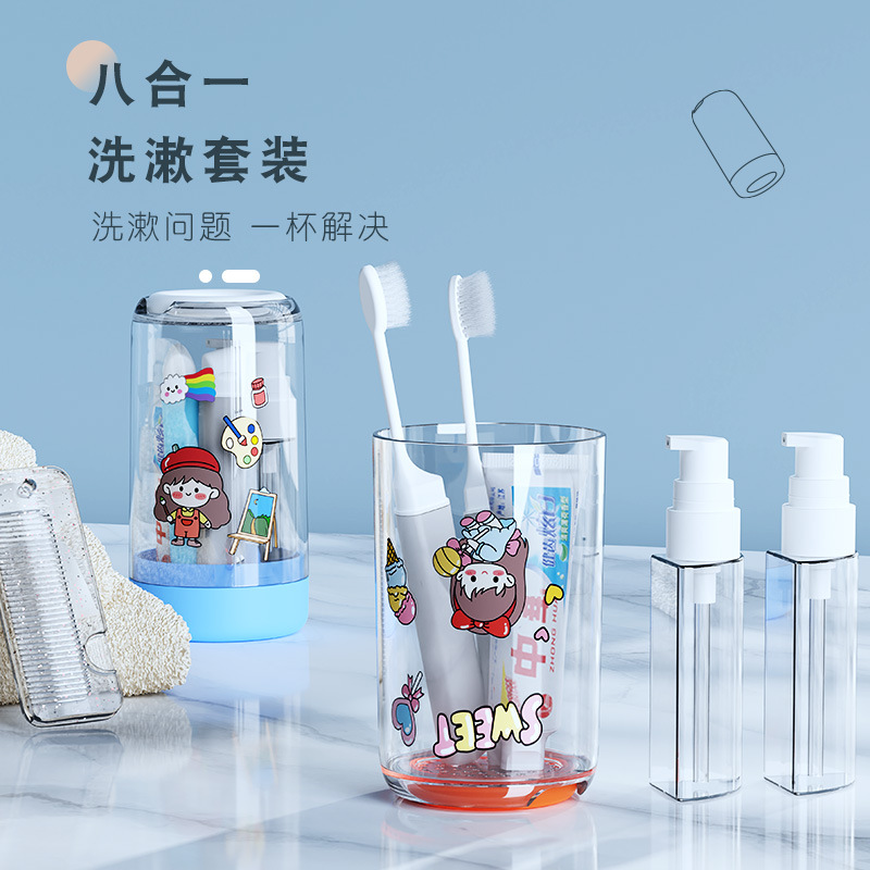 旅行洗漱套装分装瓶旅游便携漱口杯干湿分离迷你洗漱杯牙膏牙刷杯