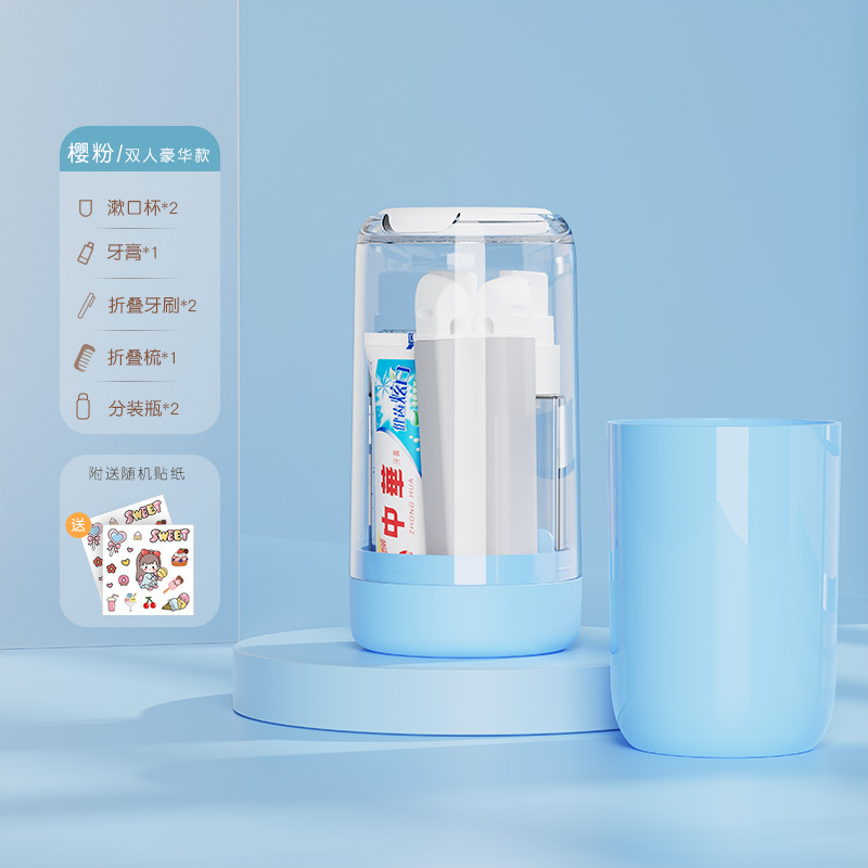 - 蓝色-八件套【含牙刷*2+牙膏*1+漱口杯*2+梳子*1+乳液瓶*2】