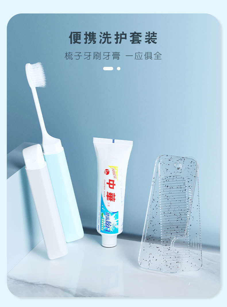 - 蓝色-六件套【含牙刷*2+牙膏*1+漱口杯*1+梳子*1+乳液瓶*2】
