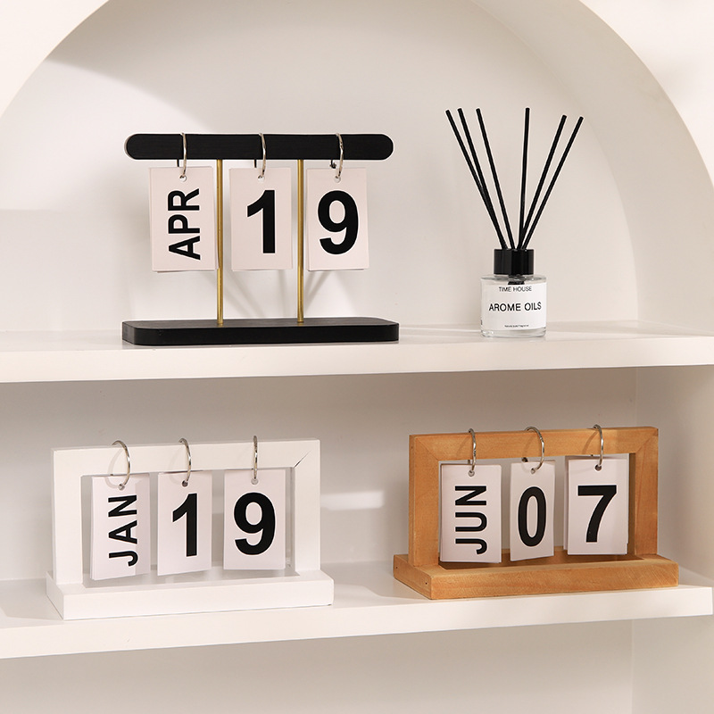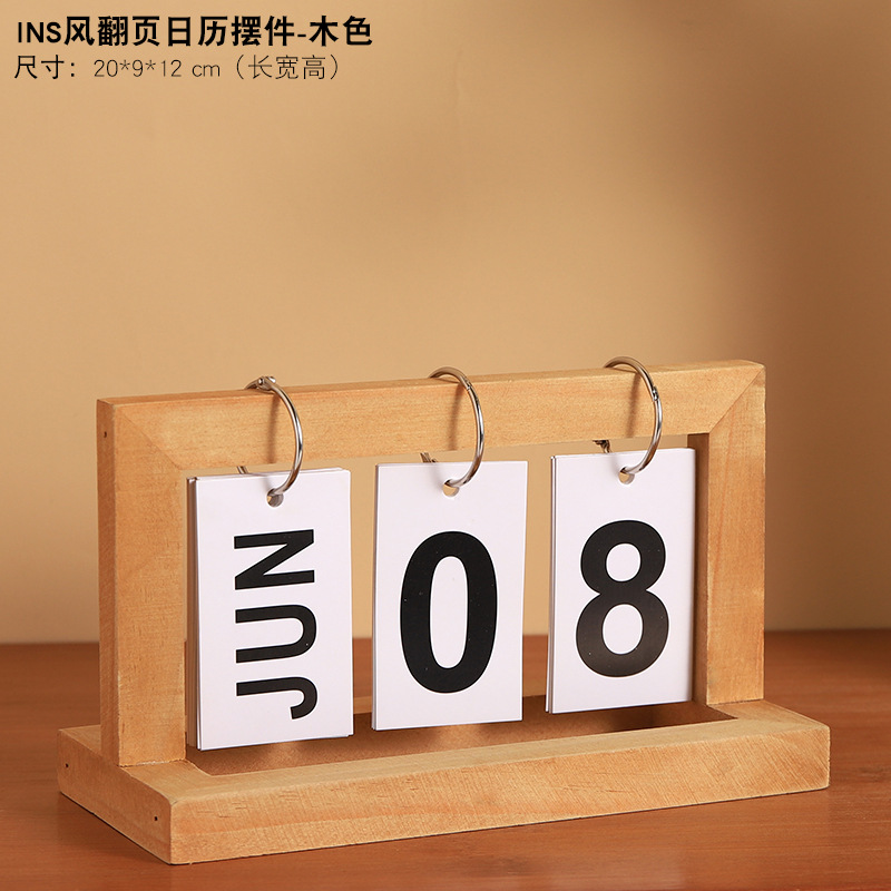 北欧风创意木质日历办公桌面家居书房客厅摆件ins风格简约装饰品