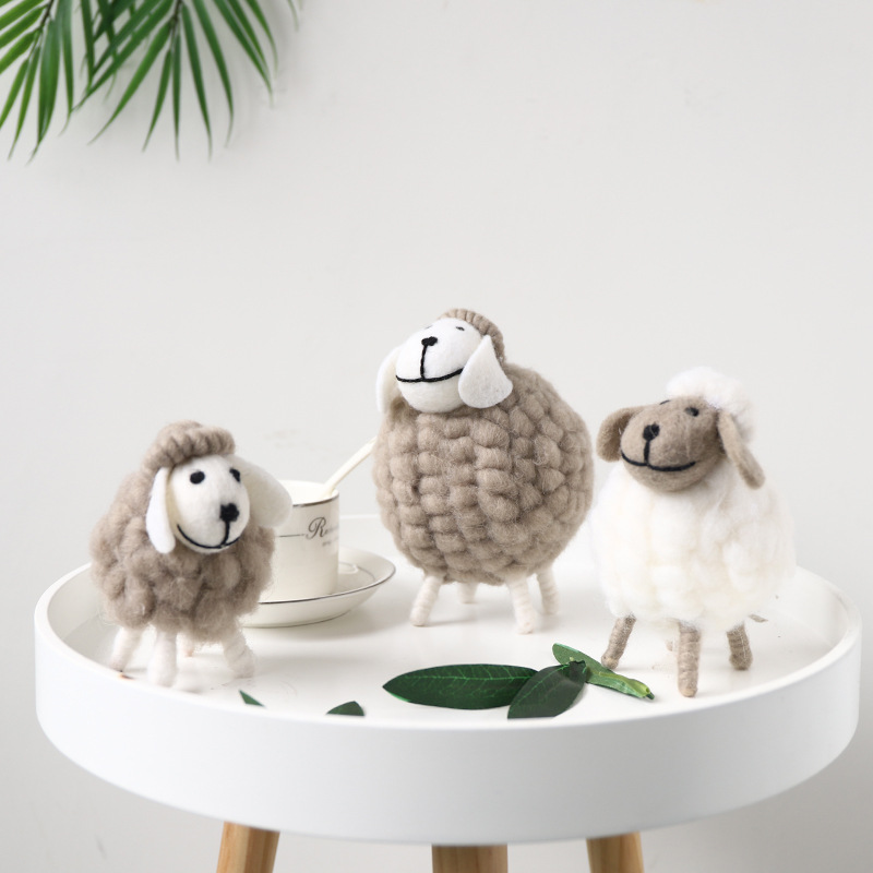可爱羊ins毛毡羊绵羊摆件创意家居卧室儿童房北欧酒柜装饰品