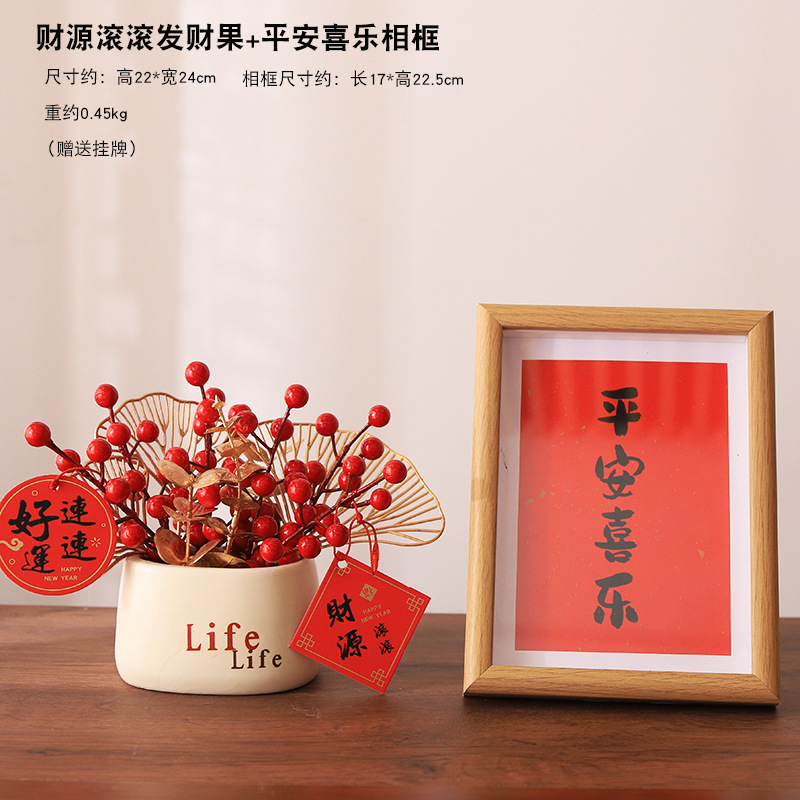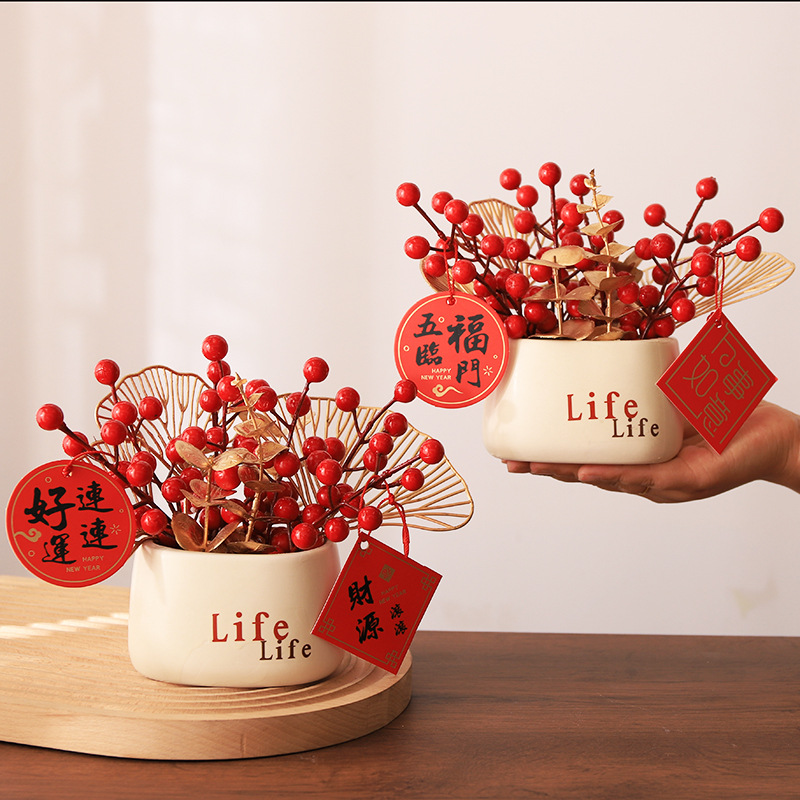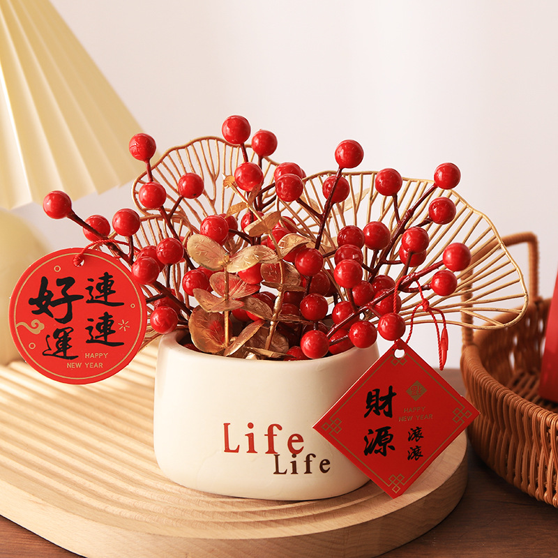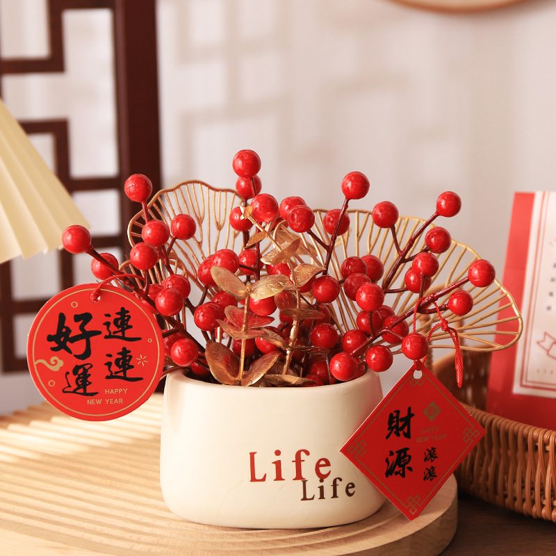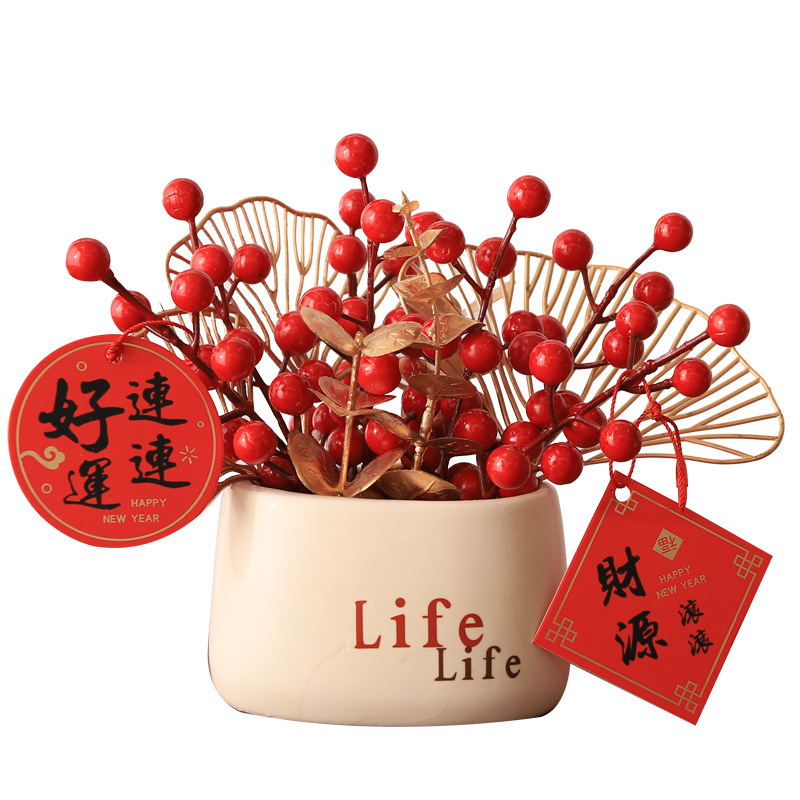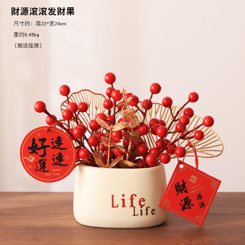 冬青发财果仿真花假花盆栽喜庆乔迁之喜开业大吉结婚装饰摆件