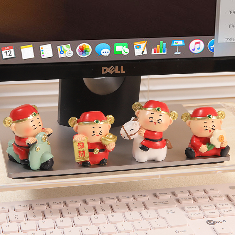 卡通可爱财神爷桌面工位小摆件开业招财办公室车载装饰品离职礼物