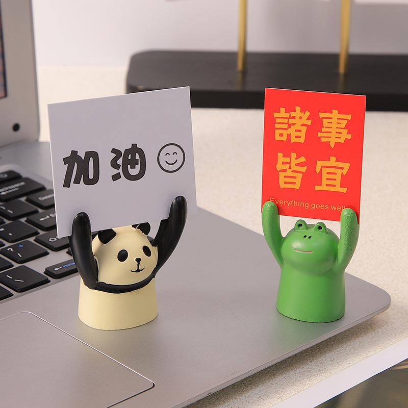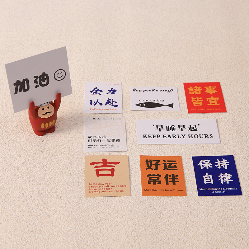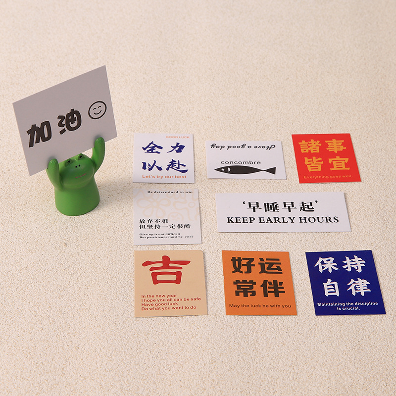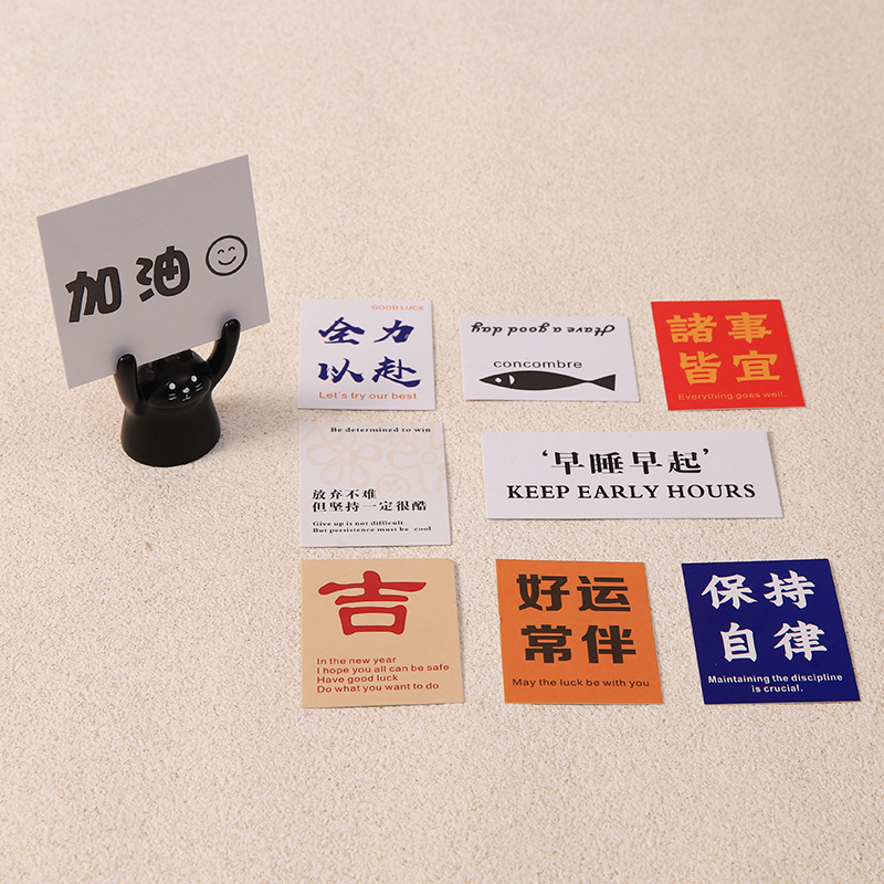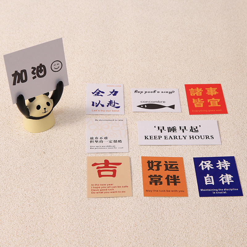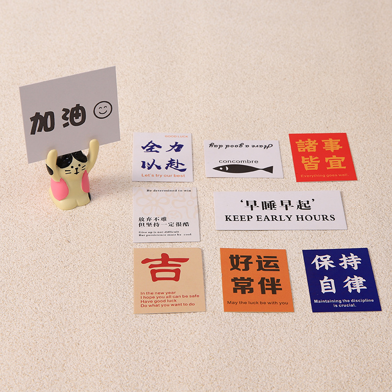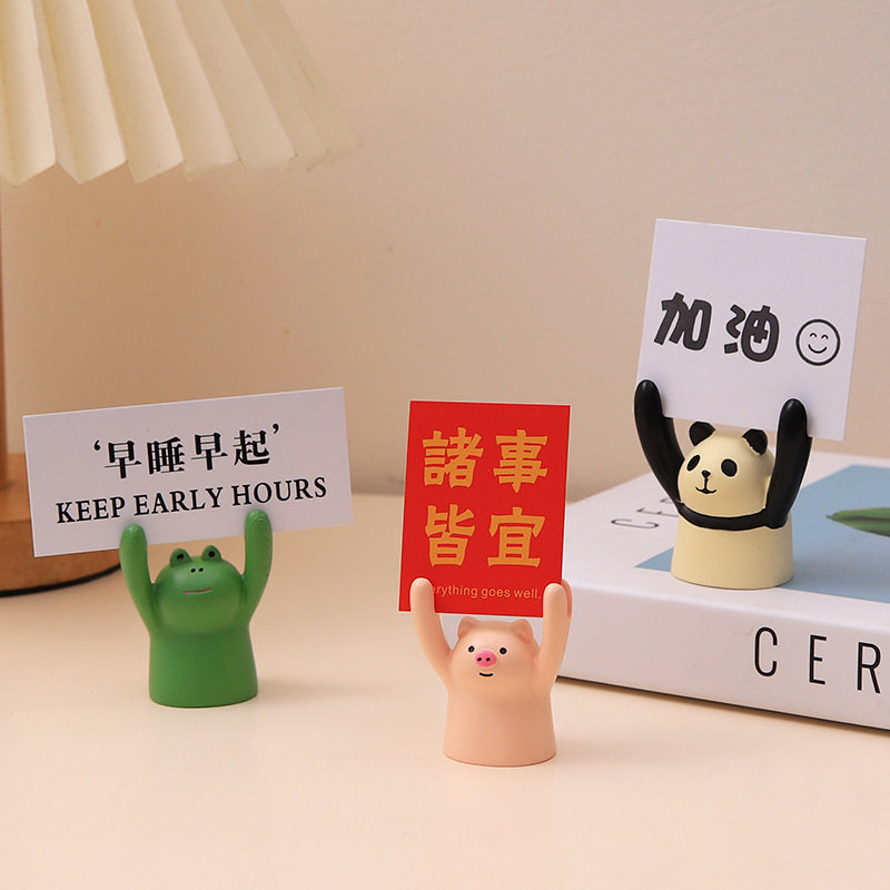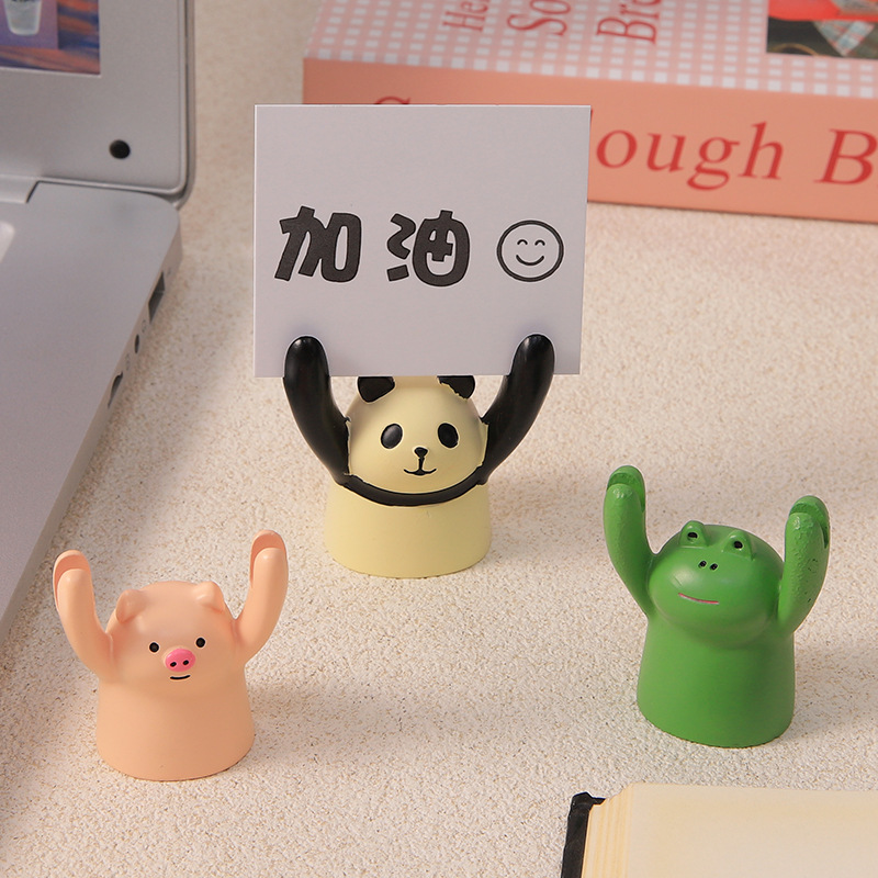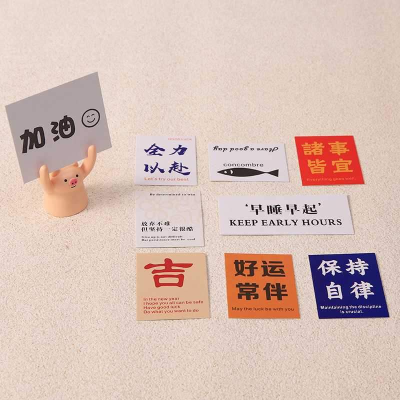 举手小猪励志加油祝福语小卡片留言夹立式举牌小动物桌面装饰摆件
