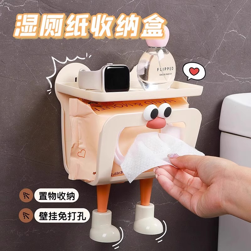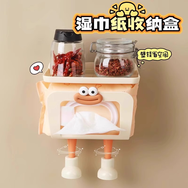 带脚【DIY香肠嘴-奶油白 1个装】壁挂湿巾盒