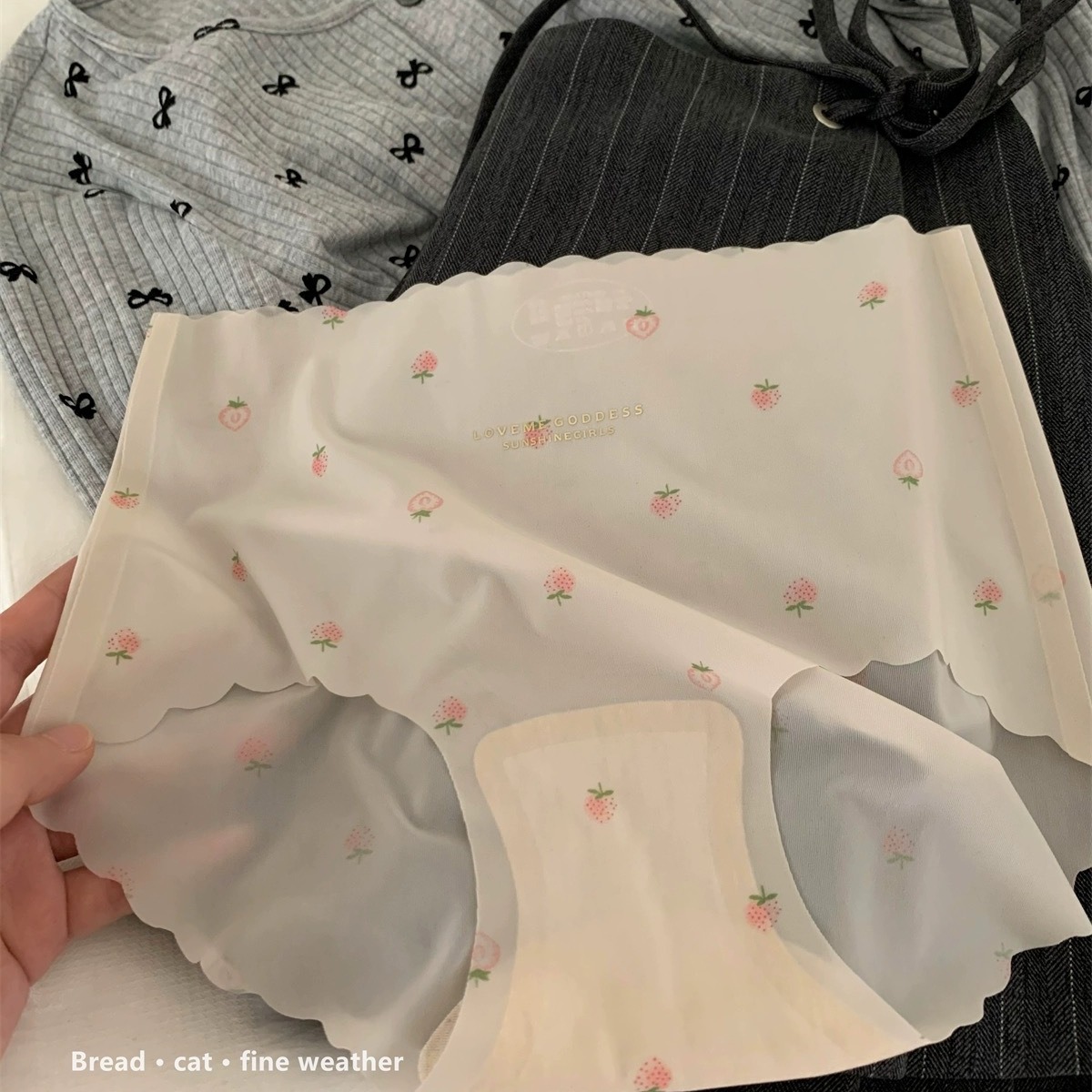 夏季新爆款无痕冰丝内裤女甜美草莓超薄随意裁透气中腰三角女内裤