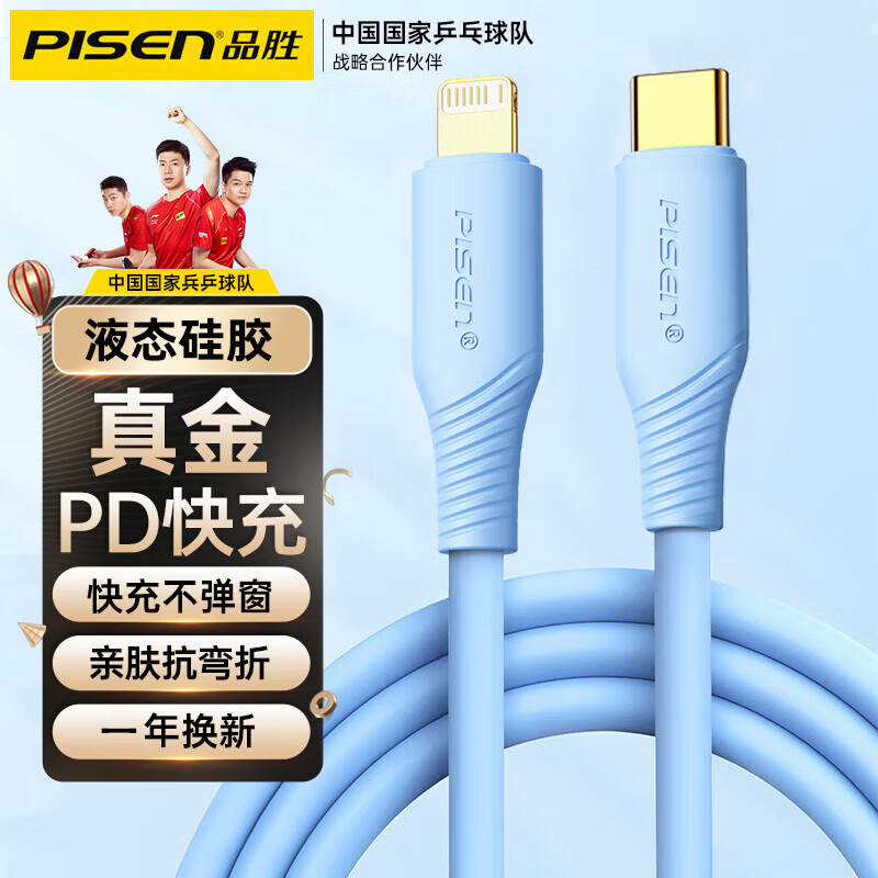 品胜适用苹果14pd快充数据线iPhone13液态软胶充电线20W闪充11长