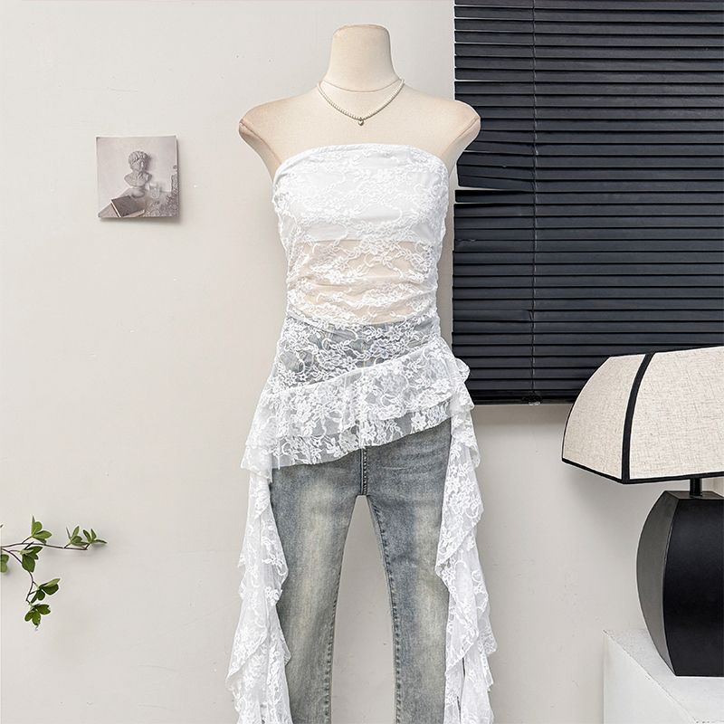 【月销10万】荷叶边镂空勾花蕾丝抹胸背心女辣妹纯欲修身显瘦上衣