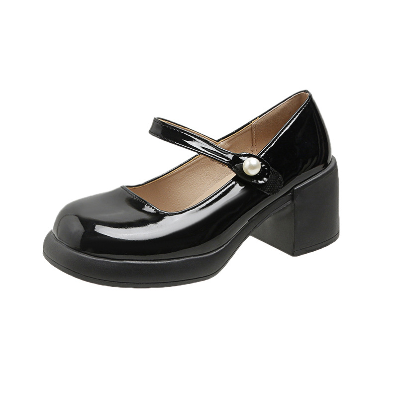 年春秋新款玛丽珍高跟鞋女鞋法式复古圆头一字扣单鞋女小皮鞋