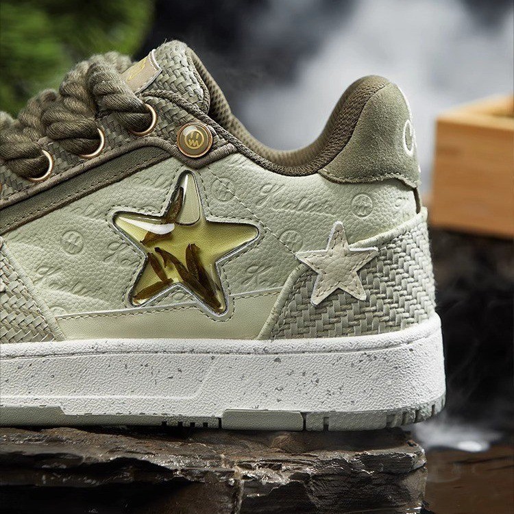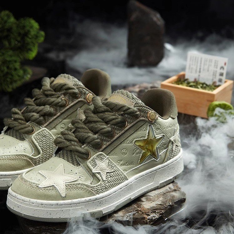 西湖龙井星星鞋子男女同款厚底增高情侣款面包鞋百搭青茶色滑板鞋